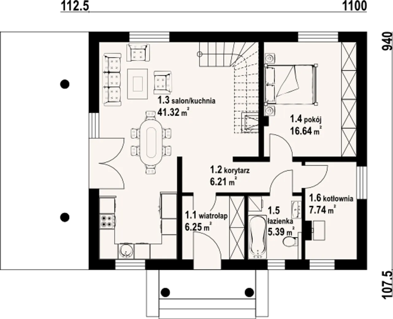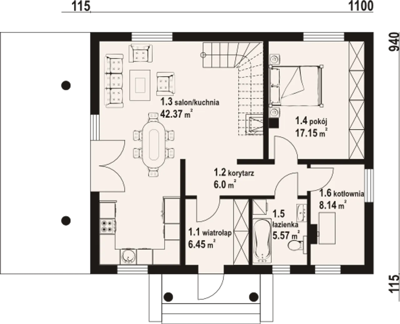 Wypełnij formularz i otrzymaj rysunki w pdf z dokładnymi wymiarami budynku i pomieszczeń (długość, szerokość, wysokość) dla projektu Sarnowo m1