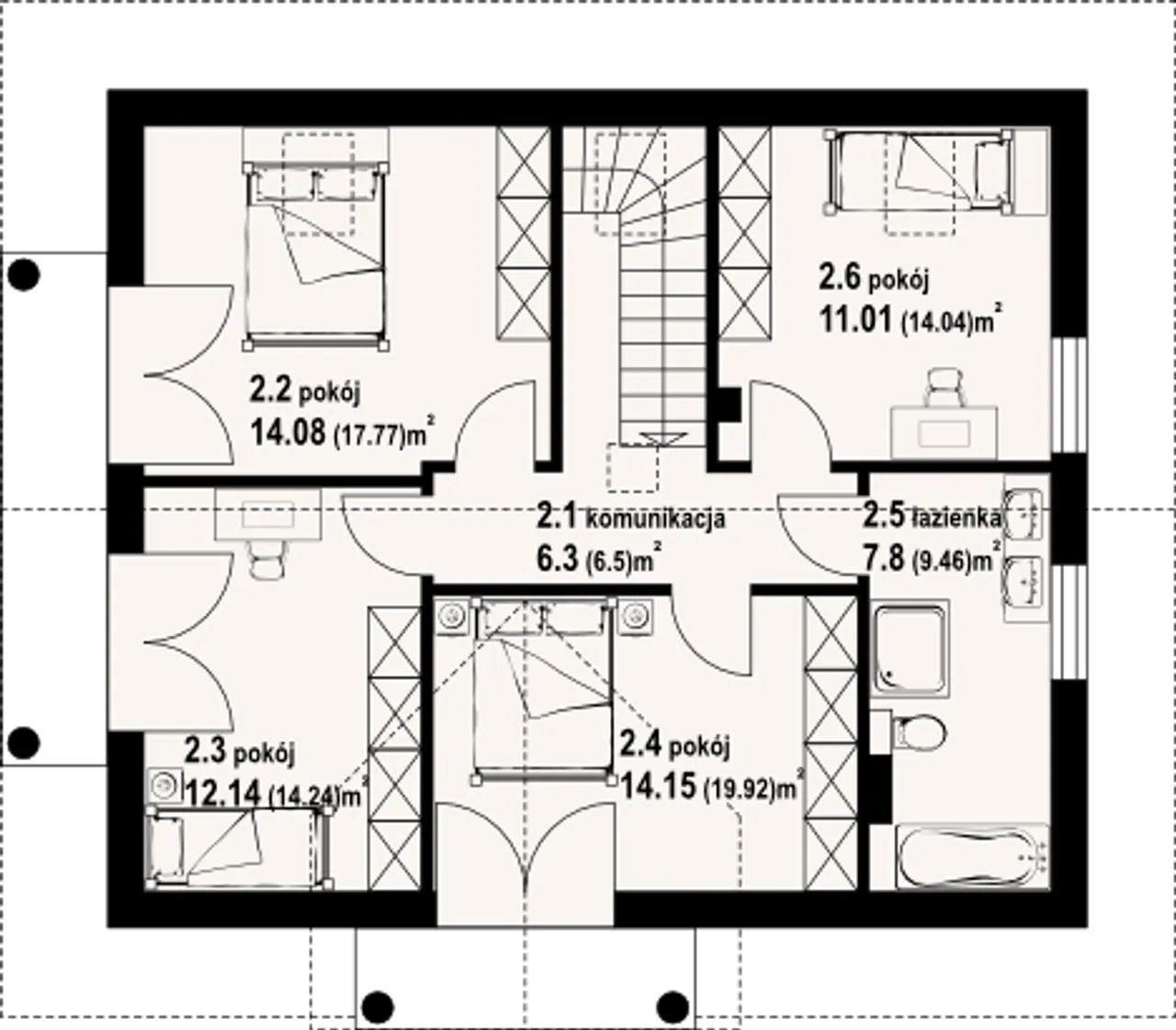 Kupując projekt w technologii murowanej powinieneś budować dom murowany. Zupełna zmiana technologii na szkieletową wymaga przeprojektowania całego budynku ( zmieniają się obciążenia, fundamenty, konstrukcja dachu). Wydamy zgodę na takie przeprojektowanie jednak wiążę się to z dużymi kosztami. Istnieją firmy wykonawcze, które podejmują się zmiany technologii budowy bezpłatnie przy skorzystaniu z ich usług wykonawczych. Zdarza się, że pracownia architektoniczna przygotowuje warianty konkretnego projektu przewidując także inne technologie. Prosimy o sprawdzenie czy istnieje poszukiwana wersja projektu, w zakładce - warianty projektu.