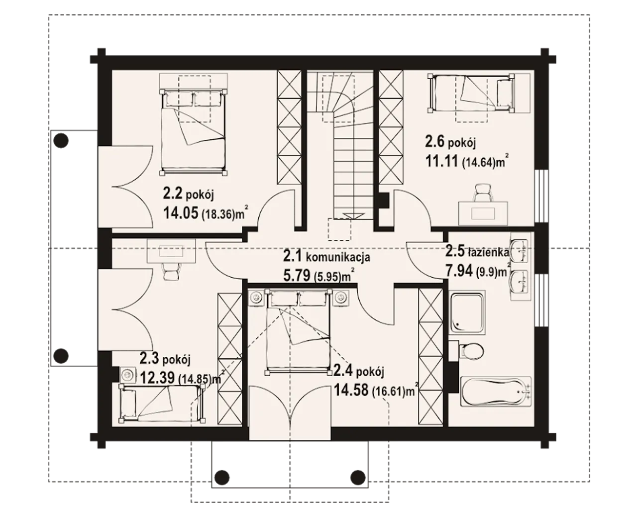 - rzutów kondygnacji użytkowych (parteru i jeśli występują: poddasza, piętra, piwnic)