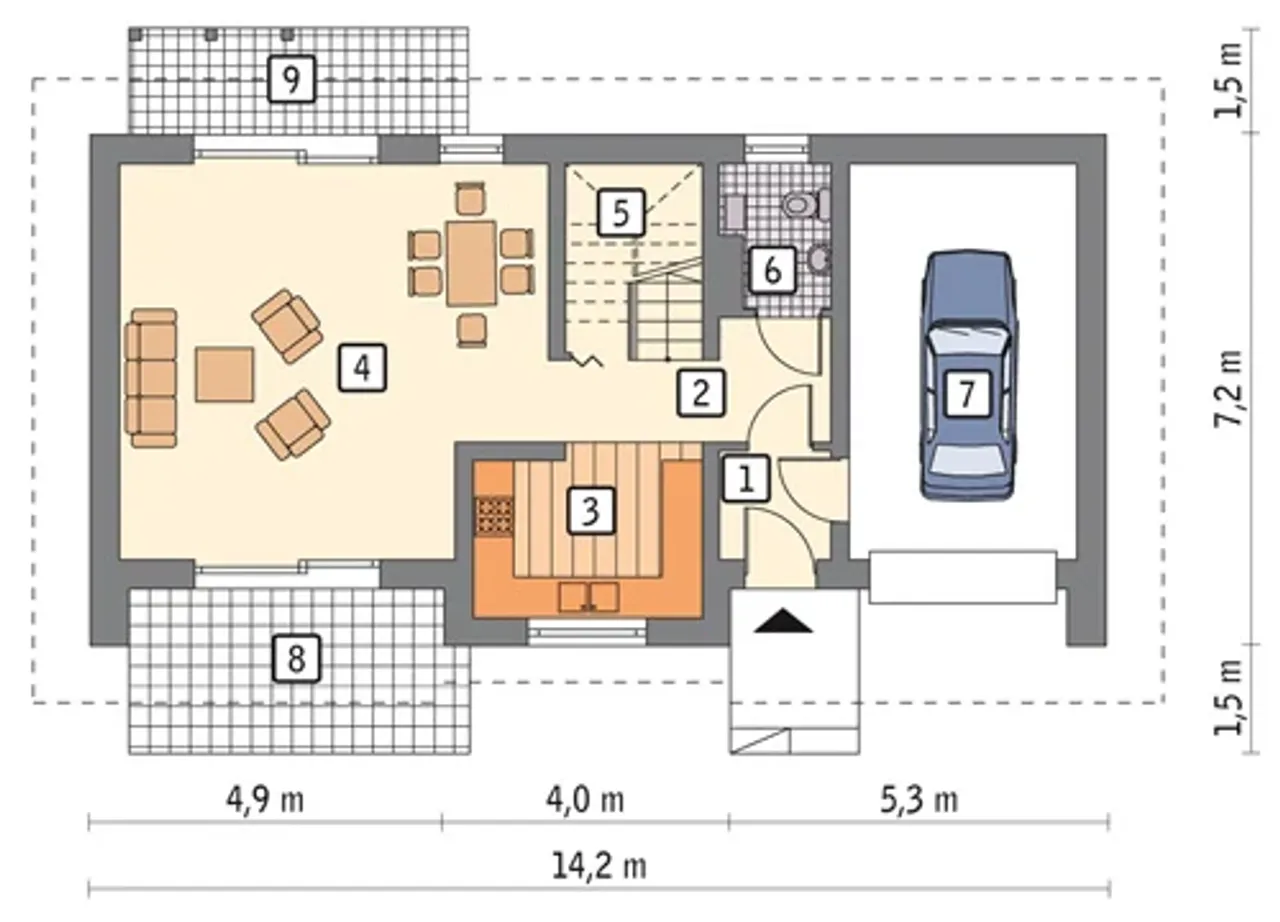 Szerokość budynku 14.2 m |
