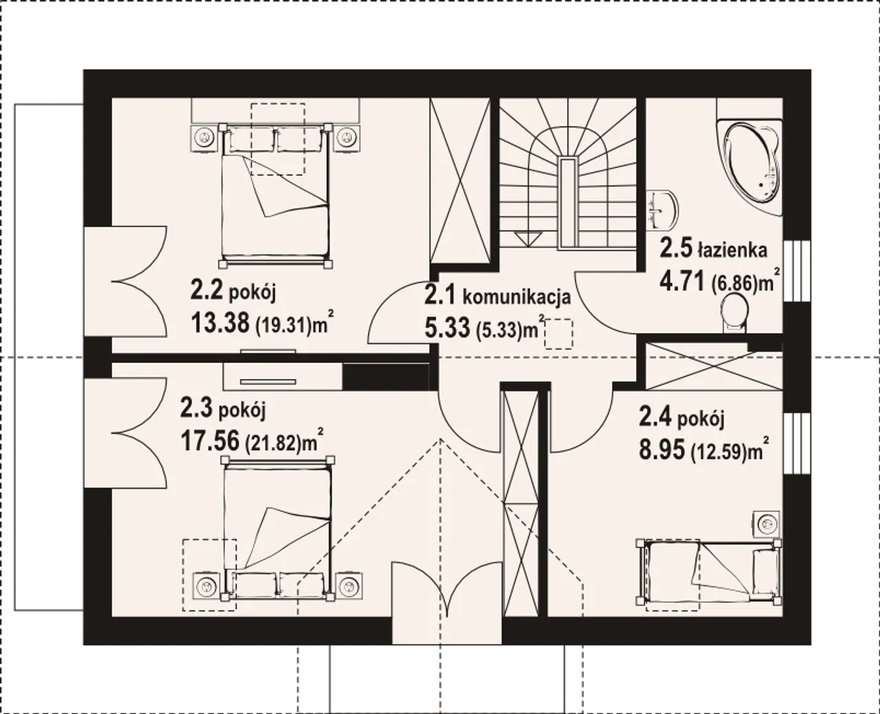 2. Pokój | 13,38 (19,31) m² |