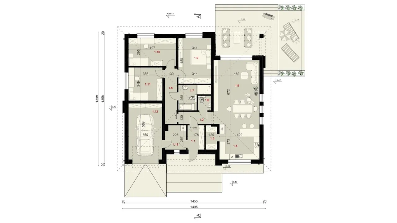 - Budynek mieszkalny jednorodzinny bez garażu, parterowy z nieużytkowym poddaszem i bez podpiwniczenia.