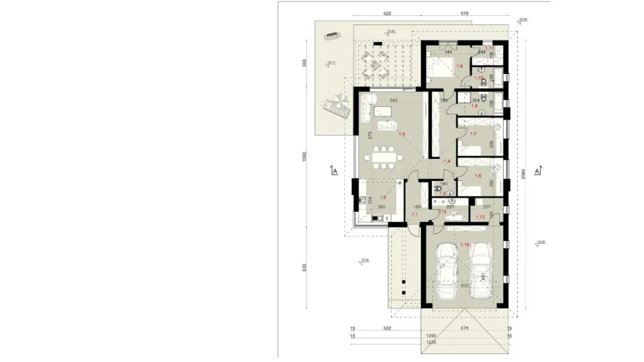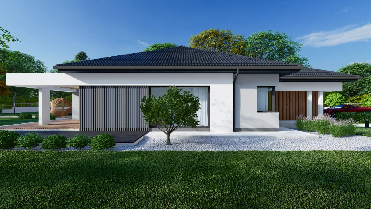 - Budynek mieszkalny jednorodzinny parterowy z nieużytkowym poddaszem i bez podpiwniczenia z garażem dwustanowiskowym.