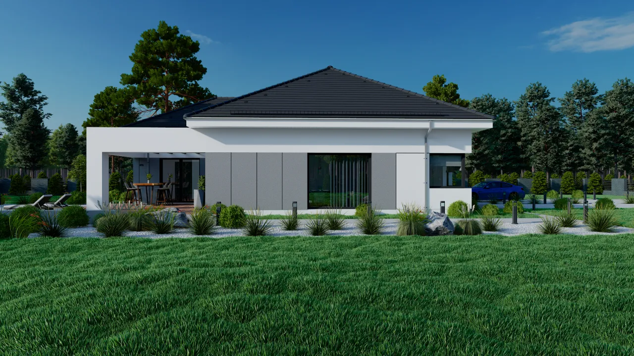 Projekt Sej-Pro 085 Energo to ciekawa propozycja dla rodzin poszukujących nowoczesnych rozwiązań. Atutem jest przestronny układ wnętrz, który sprzyja funkcjonalności i wygodzie codziennego życia. Wrażenie robi estetyczna, a jednocześnie prosta bryła budynku, która doskonale wpasowuje się w różnorodne krajobrazy. Projekt zakłada także energooszczędność, co jest istotnym aspektem z punktu widzenia długoterminowych oszczędności. Praktyczne rozmieszczenie pomieszczeń umożliwia łatwe zagospodarowanie przestrzeni, co jest bardzo korzystne dla rodzin o zróżnicowanych potrzebach.