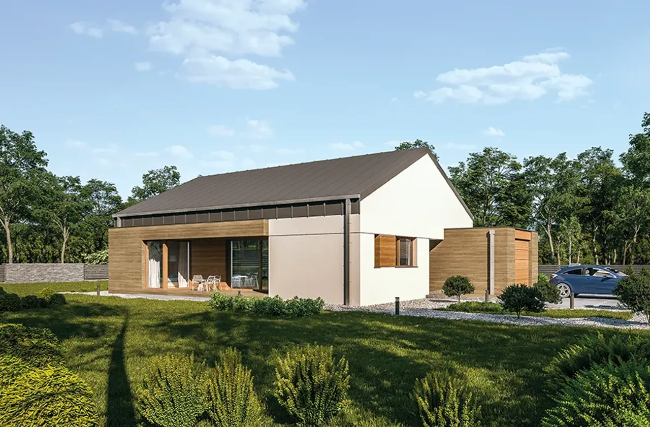 Kupując projekt w technologii murowanej powinieneś budować dom murowany. Zupełna zmiana technologii na szkieletową wymaga przeprojektowania całego budynku ( zmieniają się obciążenia, fundamenty, konstrukcja dachu). Wydamy zgodę na takie przeprojektowanie jednak wiążę się to z dużymi kosztami. Istnieją firmy wykonawcze, które podejmują się zmiany technologii budowy bezpłatnie przy skorzystaniu z ich usług wykonawczych. Zdarza się, że pracownia architektoniczna przygotowuje warianty konkretnego projektu przewidując także inne technologie. Prosimy o sprawdzenie czy istnieje poszukiwana wersja projektu, w zakładce - warianty projektu.