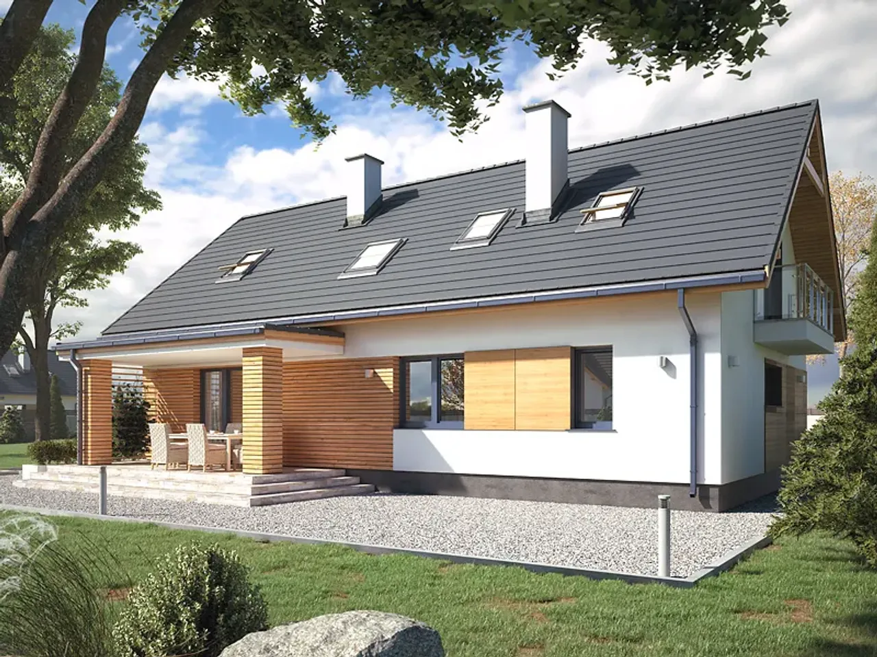 Kupując projekt w technologii murowanej powinieneś budować dom murowany. Zupełna zmiana technologii na szkieletową wymaga przeprojektowania całego budynku ( zmieniają się obciążenia, fundamenty, konstrukcja dachu). Wydamy zgodę na takie przeprojektowanie jednak wiążę się to z dużymi kosztami. Istnieją firmy wykonawcze, które podejmują się zmiany technologii budowy bezpłatnie przy skorzystaniu z ich usług wykonawczych. Zdarza się, że pracownia architektoniczna przygotowuje warianty konkretnego projektu przewidując także inne technologie. Prosimy o sprawdzenie czy istnieje poszukiwana wersja projektu, w zakładce - warianty projektu.
