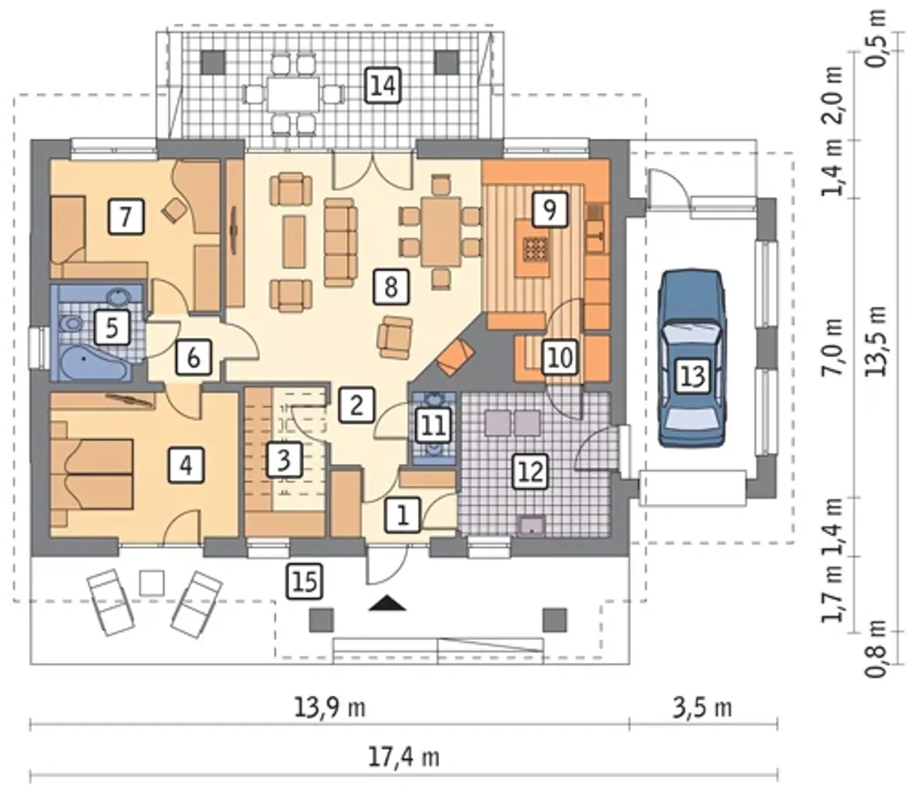 | 8. Pokój dzienny | 30,30 (30,30) m² |