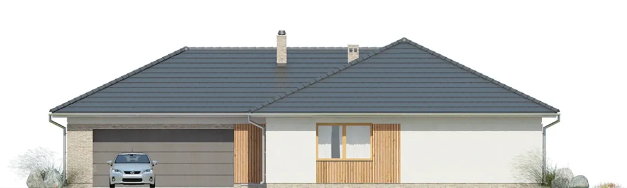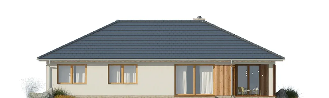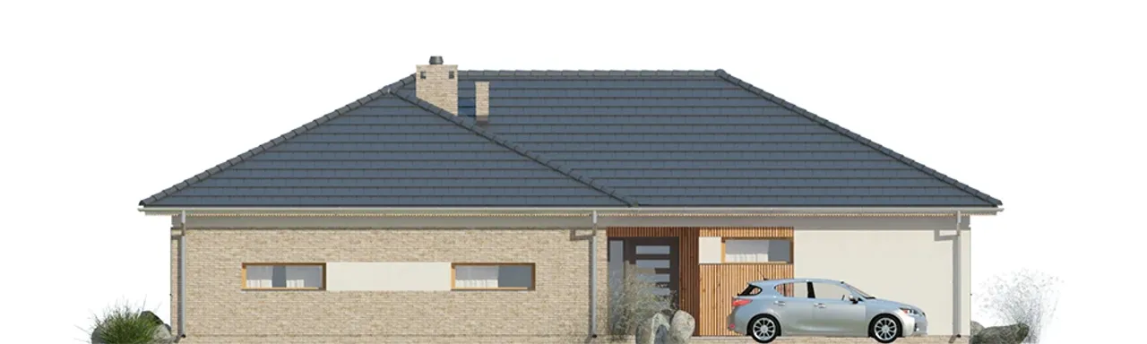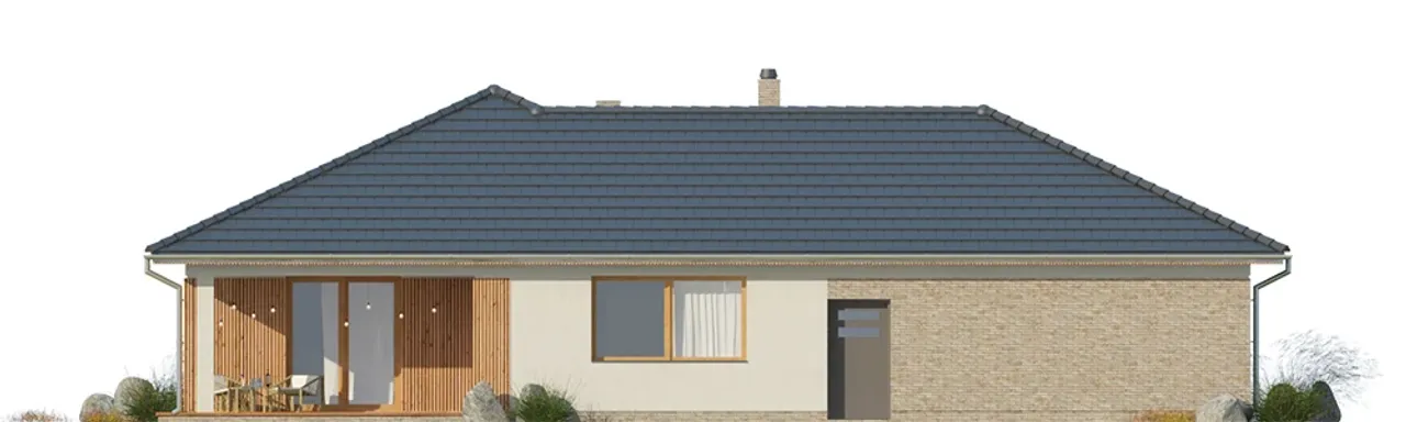 Ten parterowy dom, zaprojektowany na planie litery L, harmonijnie integruje wygodę codziennego życia z nowoczesną estetyką. Cztery ustawne pokoje pozwolą kreatywnie zagospodarować przestrzeń - na strefę wypoczynku, sypialnię, gabinet i pokój dziecięcy. Przemyślany układ gwarantuje domownikom maksymalne poczucie prywatności, podczas gdy dwa niezależne wejścia oferują elastyczność aranżacji (możliwość wydzielenia części domu pod działalność, osobne wejście dla starszego członka rodziny lub gości).