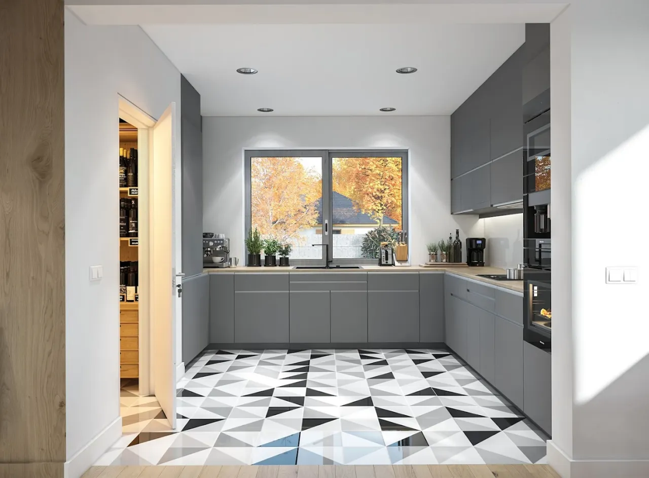 Brak schodów i podpiwniczenia to wygoda codziennego użytkowania - wszystko znajduje się na jednym poziomie. Rozwiązanie to sprzyja seniorom oraz rodzinom z dziećmi. Duża, funkcjonalna kotłownia umożliwia wybór optymalnego źródła ciepła (gaz, paliwo stałe), a oddzielna pralnia pomaga utrzymać porządek. Dodatkowym atutem jest spiżarnia przy kuchni, która minimalizuje częstotliwość zakupów i pomaga organizować przestrzeń.