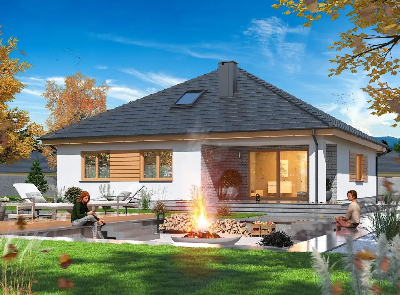 Ten parterowy dom bez garażu świetnie wpisuje się w potrzeby osób ceniących przestronność, obecność kominka oraz dostęp do dużej kotłowni i spiżarni. Dzięki starannie dobranym materiałom i nowoczesnej technologii budowy, dom wybudowany na podstawie projektu Serafin 3 będzie przyjazny użytkownikom oraz tani w eksploatacji.
