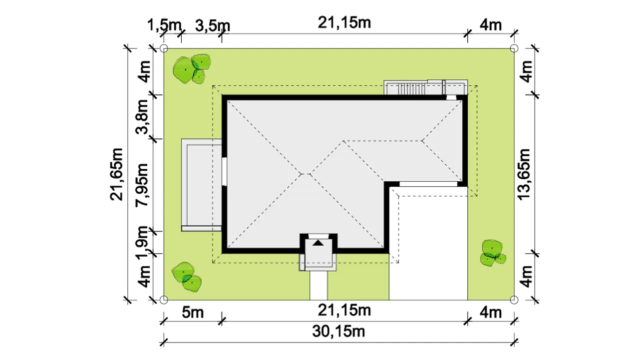 Szerokość budynku 21.15 m |