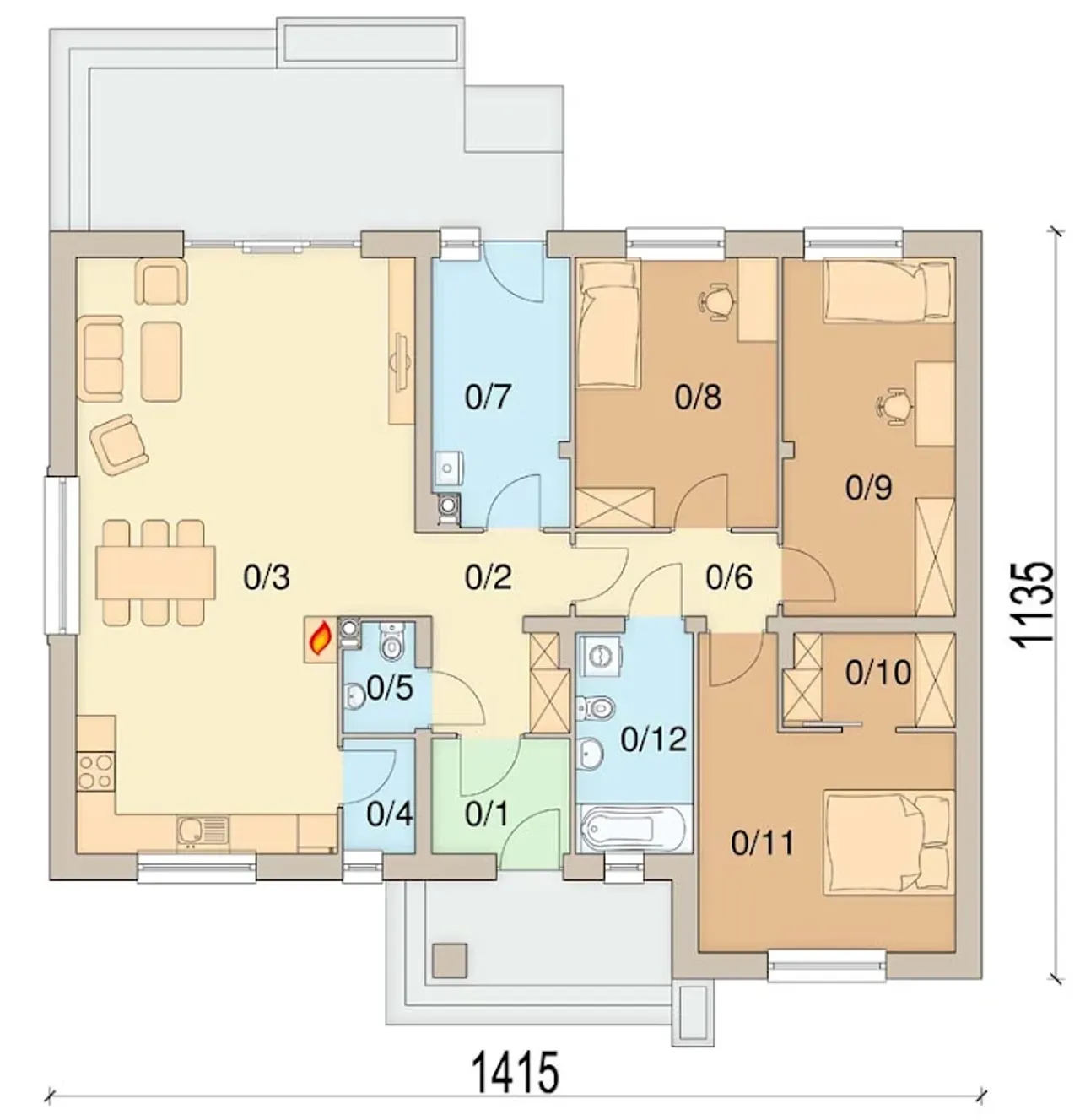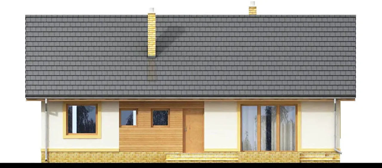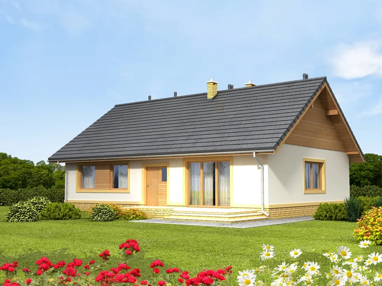 Projekt domu Sezam 2 to propozycja dla osób szukających funkcjonalnego, tradycyjnego domu jednorodzinnego do całorocznego zamieszkania. Przemyślany układ obejmuje 4 przestronne pokoje, kominek oraz konstrukcję bez garażu - wszystko w kompaktowej i praktycznej parterowej bryle. Ten projekt zachwyci tych, którzy cenią wygodę na jednym poziomie, estetykę klasycznej architektury oraz trwałe, solidne rozwiązania budowlane.