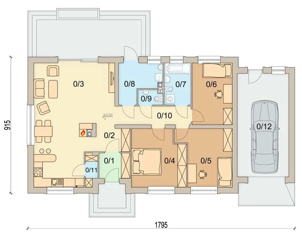 Całoroczny dom jednorodzinny Sezam 2 G1 oferuje uniwersalne opcje ogrzewania - gazowe lub na paliwo stałe - dzięki czemu możesz dobrać źródło ciepła do własnych preferencji. Parterowa forma budynku z kalenicą równoległą do drogi i praktycznym rozmieszczeniem pomieszczeń pozwala na wygodne poruszanie się i zagospodarowanie każdego zakątka. Dom nie ma podpiwniczenia, co znacząco przyspiesza czas budowy i ogranicza koszty fundamentów.