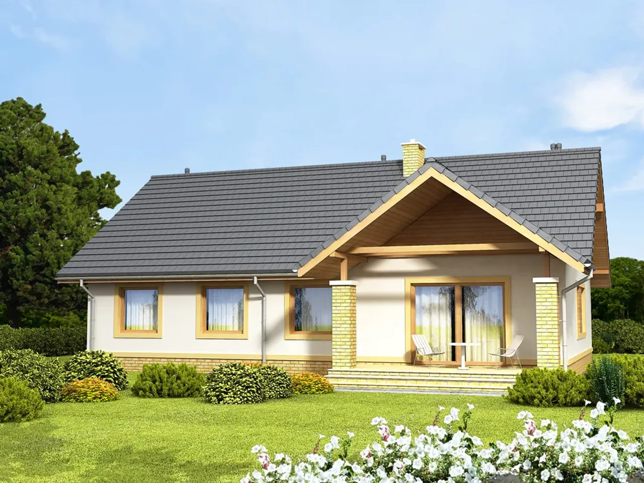 Projekt domu Sezam 4 to propozycja funkcjonalnego, całorocznego domu jednorodzinnego o tradycyjnej bryle i klasie wykonania, która zachwyci każdego inwestora ceniącego wygodę, ekonomię i styl. Przemyślane rozwiązania konstrukcyjne oraz solidne materiały sprawiają, że ten parterowy dom doskonale sprawdzi się jako miejsce codziennego życia.