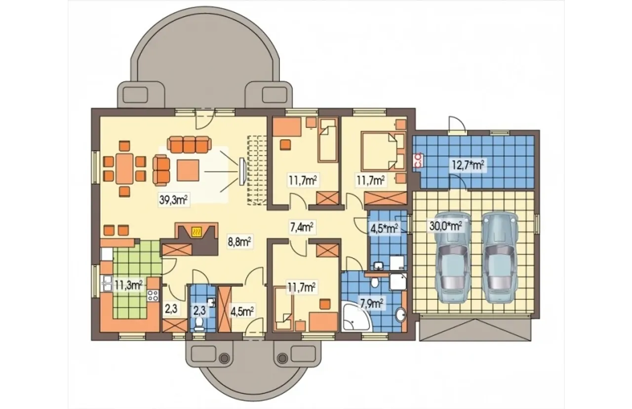 Wypełnij formularz i otrzymaj rysunki w pdf z dokładnymi wymiarami budynku i pomieszczeń (długość, szerokość, wysokość) dla projektu Sielanka 30st. wer. B dach 4-spad., podw. gar. paliwo stałe