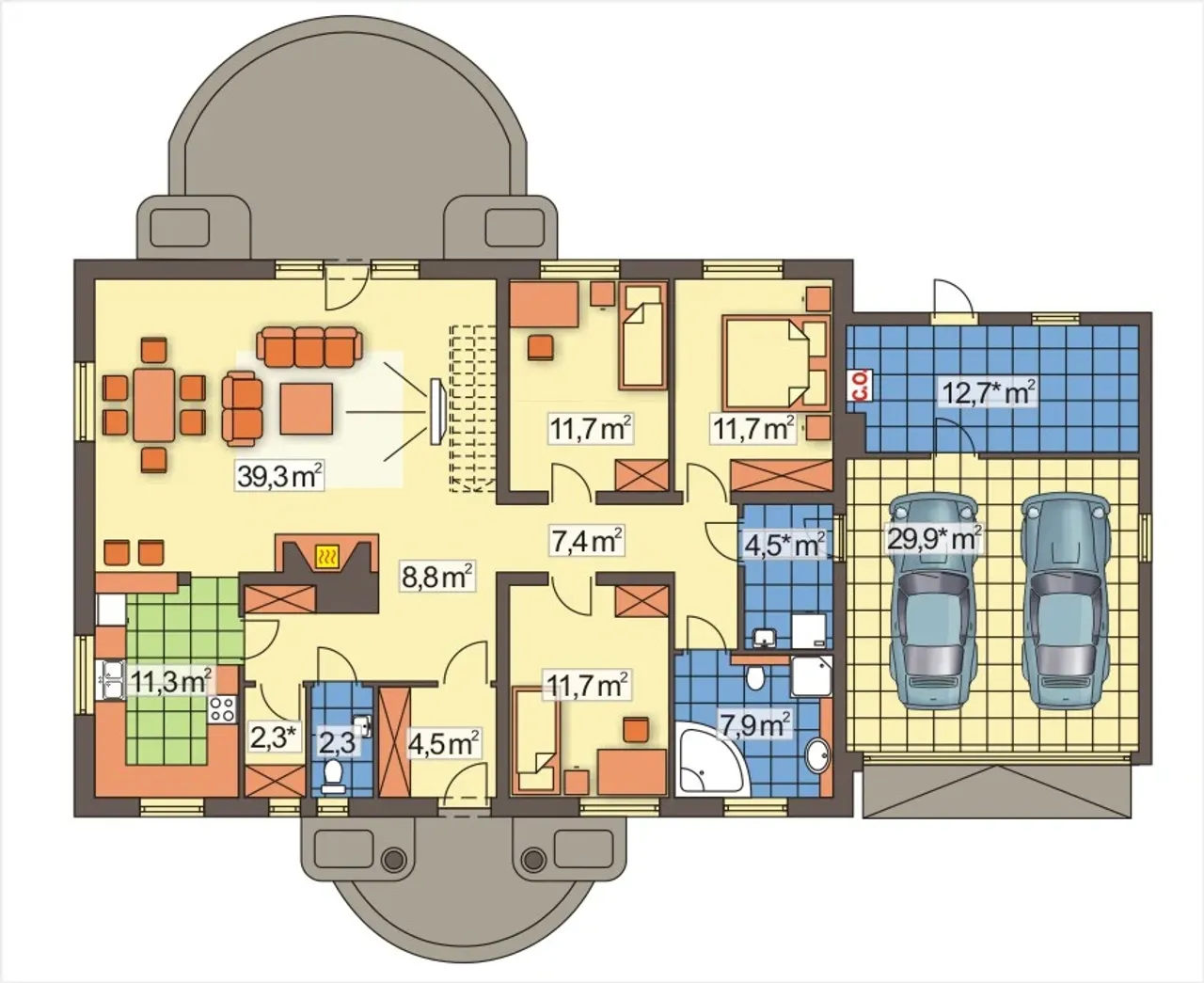 Wypełnij formularz i otrzymaj rysunki w pdf z dokładnymi wymiarami budynku i pomieszczeń (długość, szerokość, wysokość) dla projektu Sielanka II 35st. wer. A dach 2-spad., podw. gar. paliwo stałe