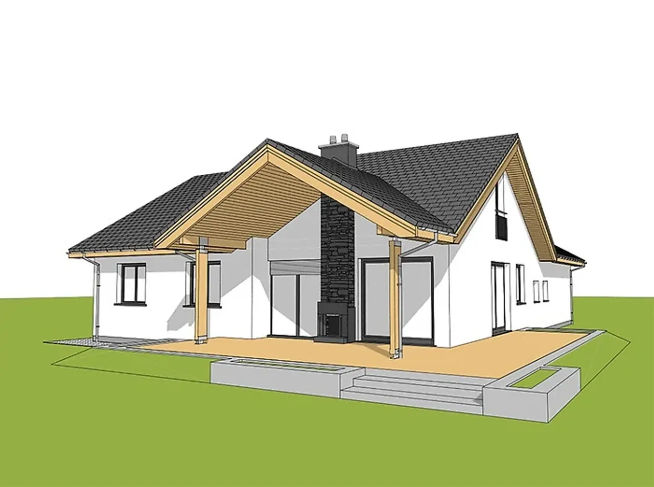 Kupując projekt w technologii murowanej powinieneś budować dom murowany. Zupełna zmiana technologii na szkieletową wymaga przeprojektowania całego budynku ( zmieniają się obciążenia, fundamenty, konstrukcja dachu). Wydamy zgodę na takie przeprojektowanie jednak wiążę się to z dużymi kosztami. Istnieją firmy wykonawcze, które podejmują się zmiany technologii budowy bezpłatnie przy skorzystaniu z ich usług wykonawczych. Zdarza się, że pracownia architektoniczna przygotowuje warianty konkretnego projektu przewidując także inne technologie. Prosimy o sprawdzenie czy istnieje poszukiwana wersja projektu, w zakładce - warianty projektu.