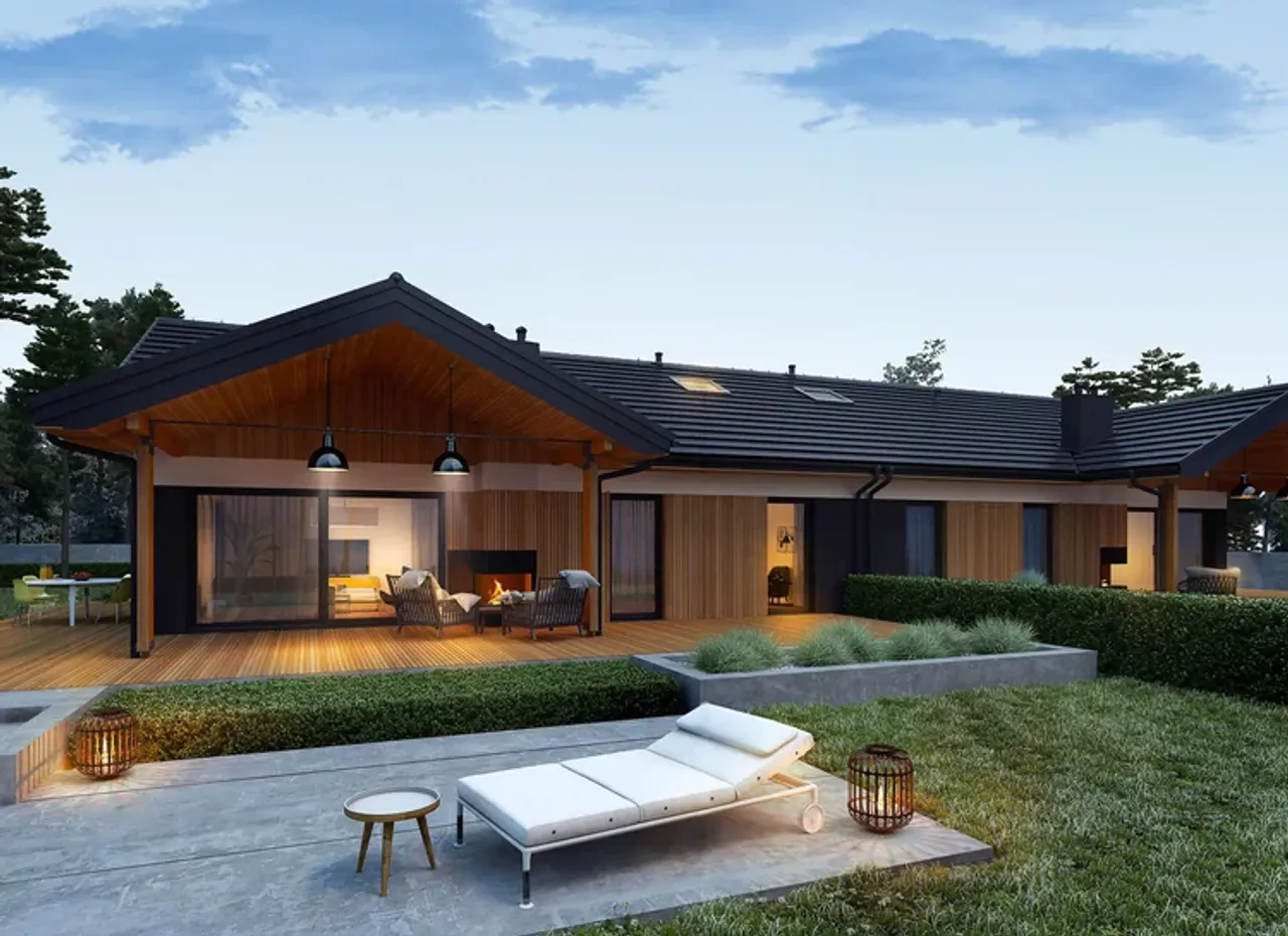 Projekt domu Simon IV G2 Bliźniak zachwyca naprawdę przestronnymi, jasnymi wnętrzami, które oferują komfort i funkcjonalność dla całej rodziny. Nietuzinkowa architektura budynku, z interesującym designem i eleganckim wykończeniem, sprawia wrażenie nowoczesnego i prestiżowego miejsca do życia. Ogromnym atutem jest również duża ilość miejsca na zewnątrz, idealne do przyjemnego wypoczynku czy spotkań z rodziną i przyjaciółmi.