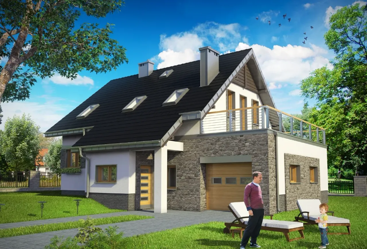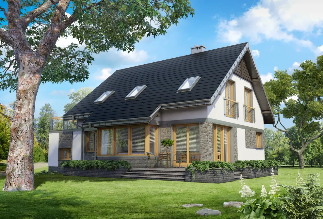 - elewacje - pokazują dokładny wygląd domu od frontu, z tyłu i z boków