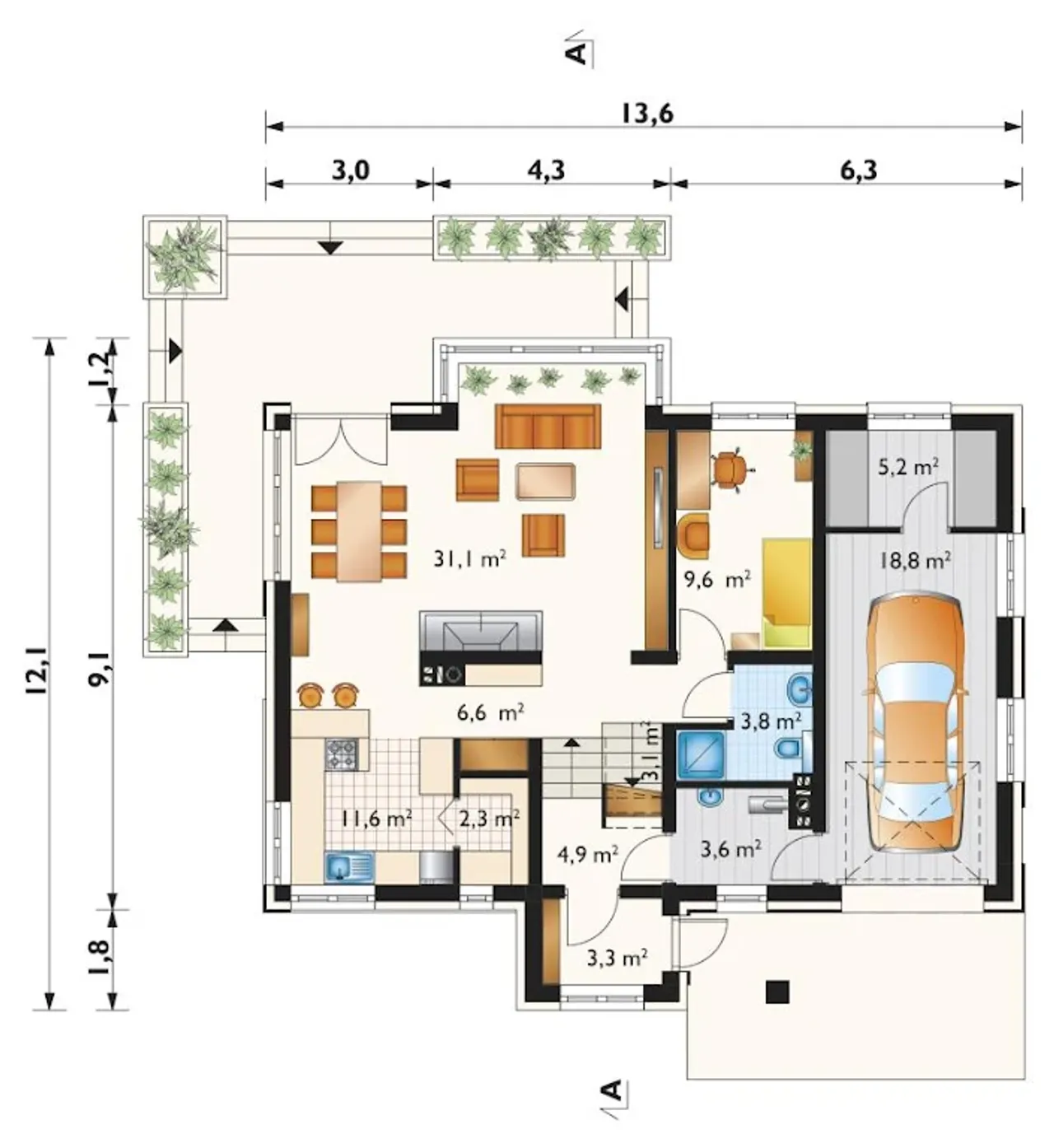 Imponujący koncept! Projekt wydaje się łączyć elegancję z funkcjonalnością. Wspaniale, że architekt uwzględnił tak dużo przestrzeni na taras, aby można było cieszyć się na świeżym powietrzu.