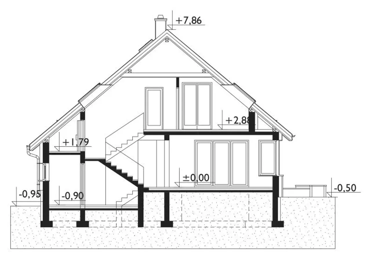 - przekroje - pokazują wszystkie elementy budynku po przecięciu go wzdłuż lub w poprzek od dachu do fundamentów tj. warstwy podłogi, stropów i dachu