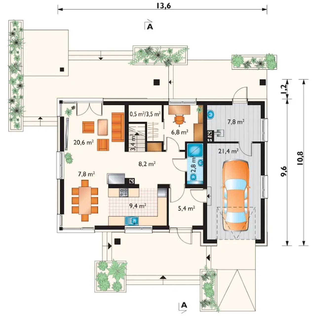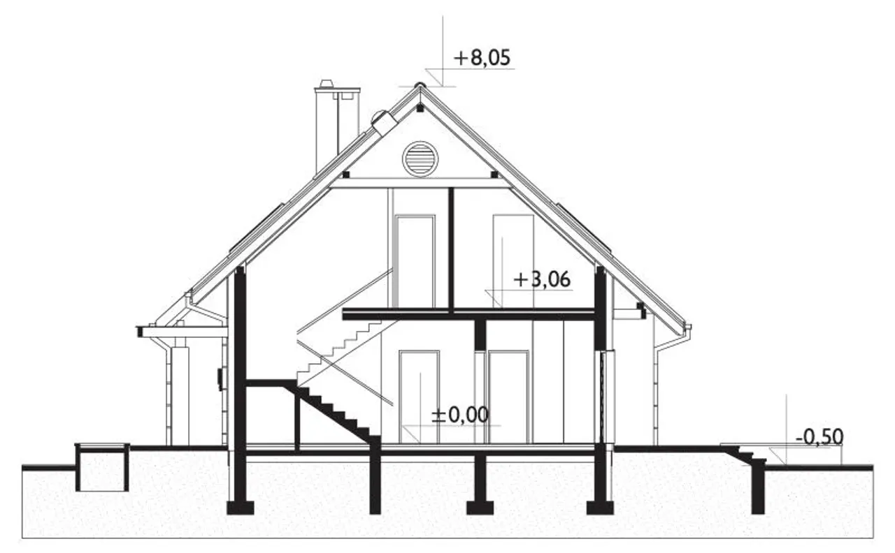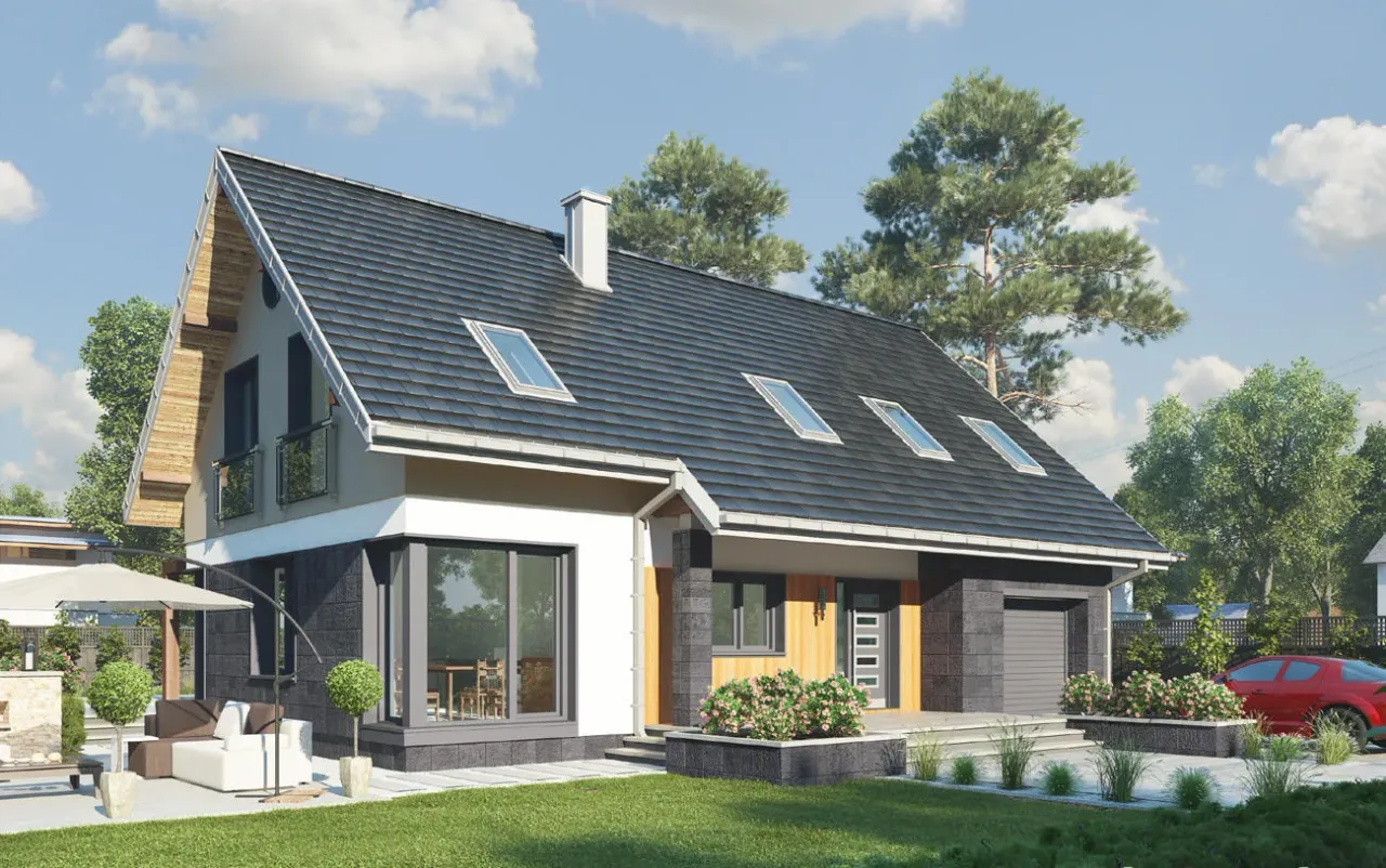 - elewacje - pokazują dokładny wygląd domu od frontu, z tyłu i z boków