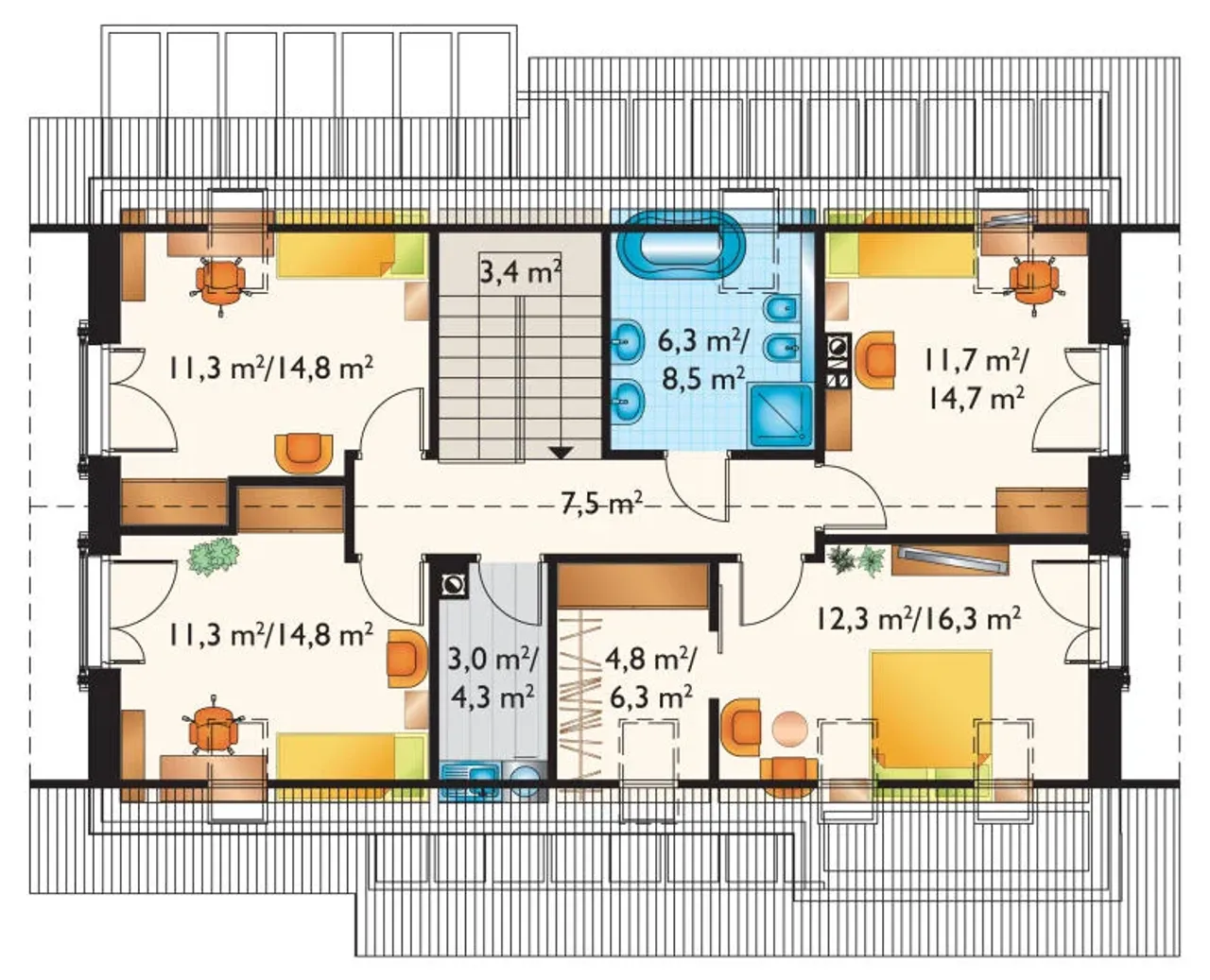 Kupując projekt w technologii murowanej powinieneś budować dom murowany. Zupełna zmiana technologii na szkieletową wymaga przeprojektowania całego budynku ( zmieniają się obciążenia, fundamenty, konstrukcja dachu). Wydamy zgodę na takie przeprojektowanie jednak wiążę się to z dużymi kosztami. Istnieją firmy wykonawcze, które podejmują się zmiany technologii budowy bezpłatnie przy skorzystaniu z ich usług wykonawczych. Zdarza się, że pracownia architektoniczna przygotowuje warianty konkretnego projektu przewidując także inne technologie. Prosimy o sprawdzenie czy istnieje poszukiwana wersja projektu, w zakładce - warianty projektu.