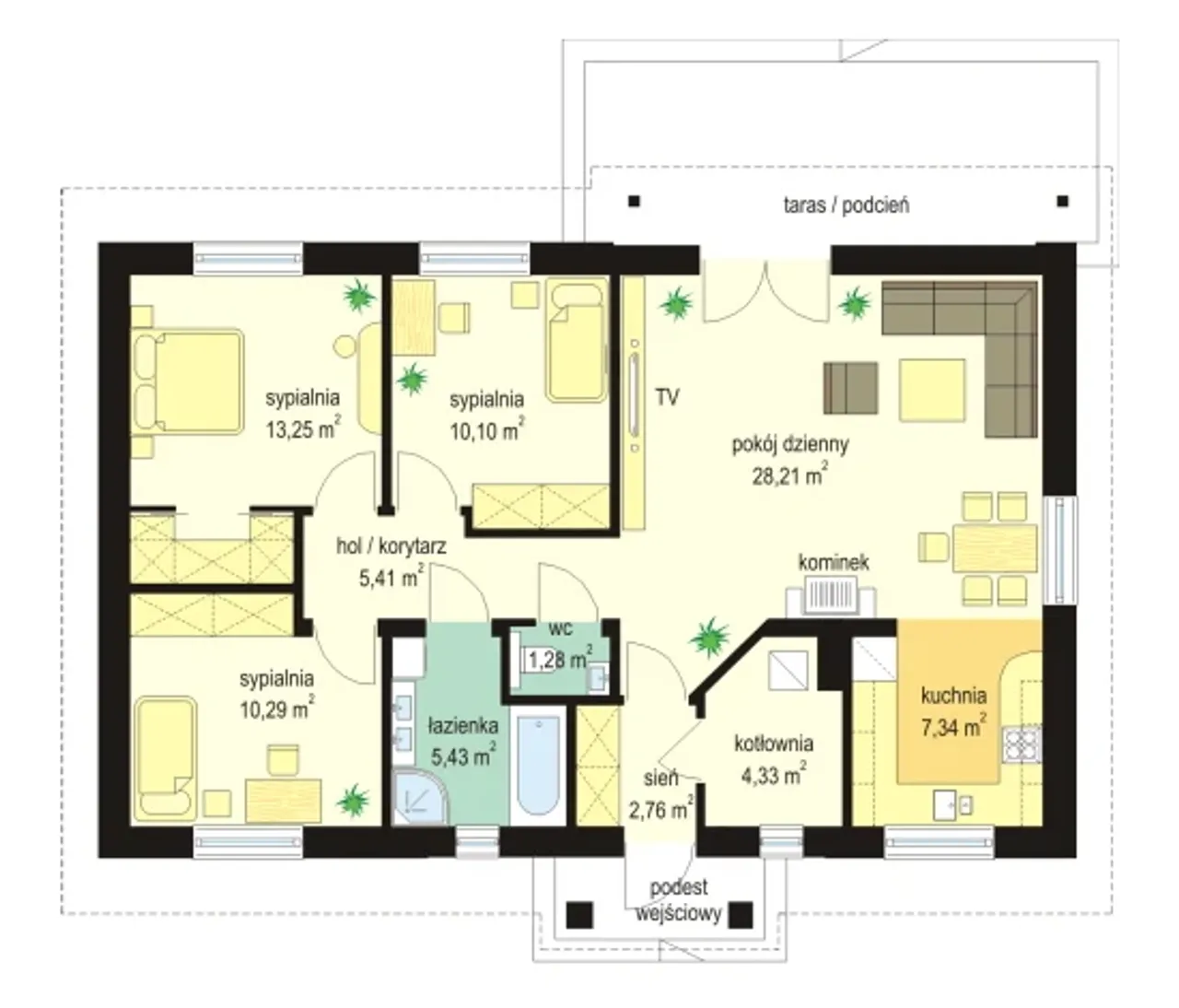 Wypełnij formularz i otrzymaj rysunki w pdf z dokładnymi wymiarami budynku i pomieszczeń (długość, szerokość, wysokość) dla projektu Słoneczny 2