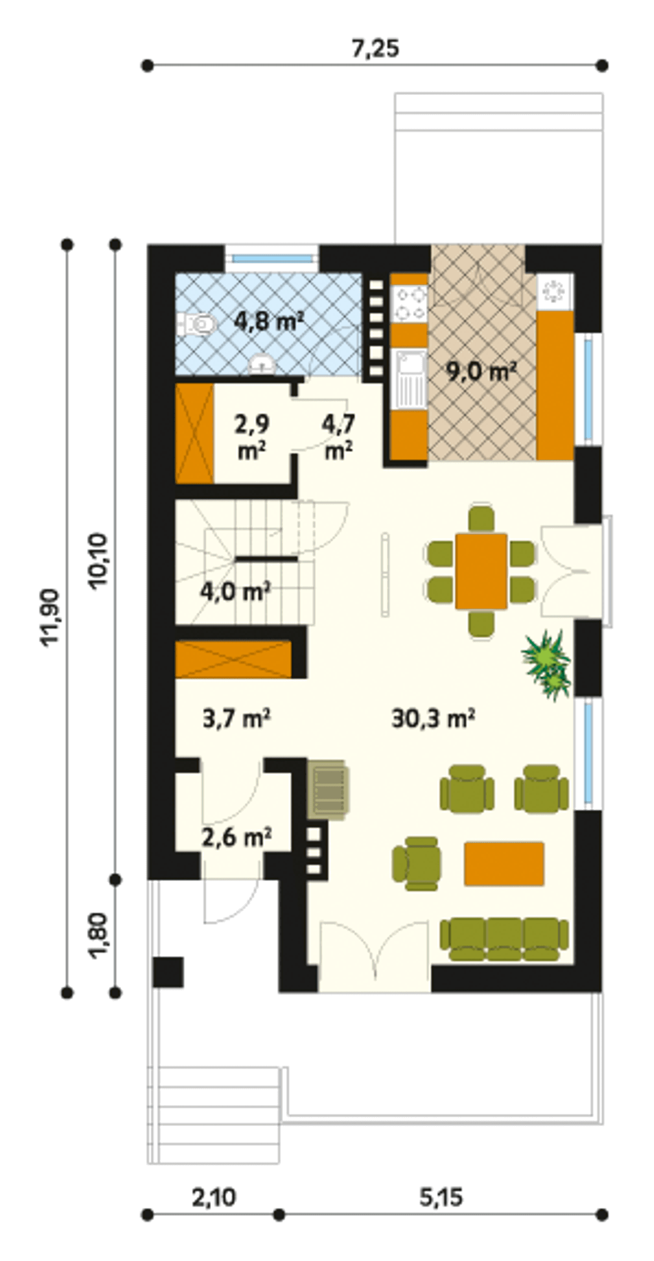 Szerokość budynku 7.25 m |