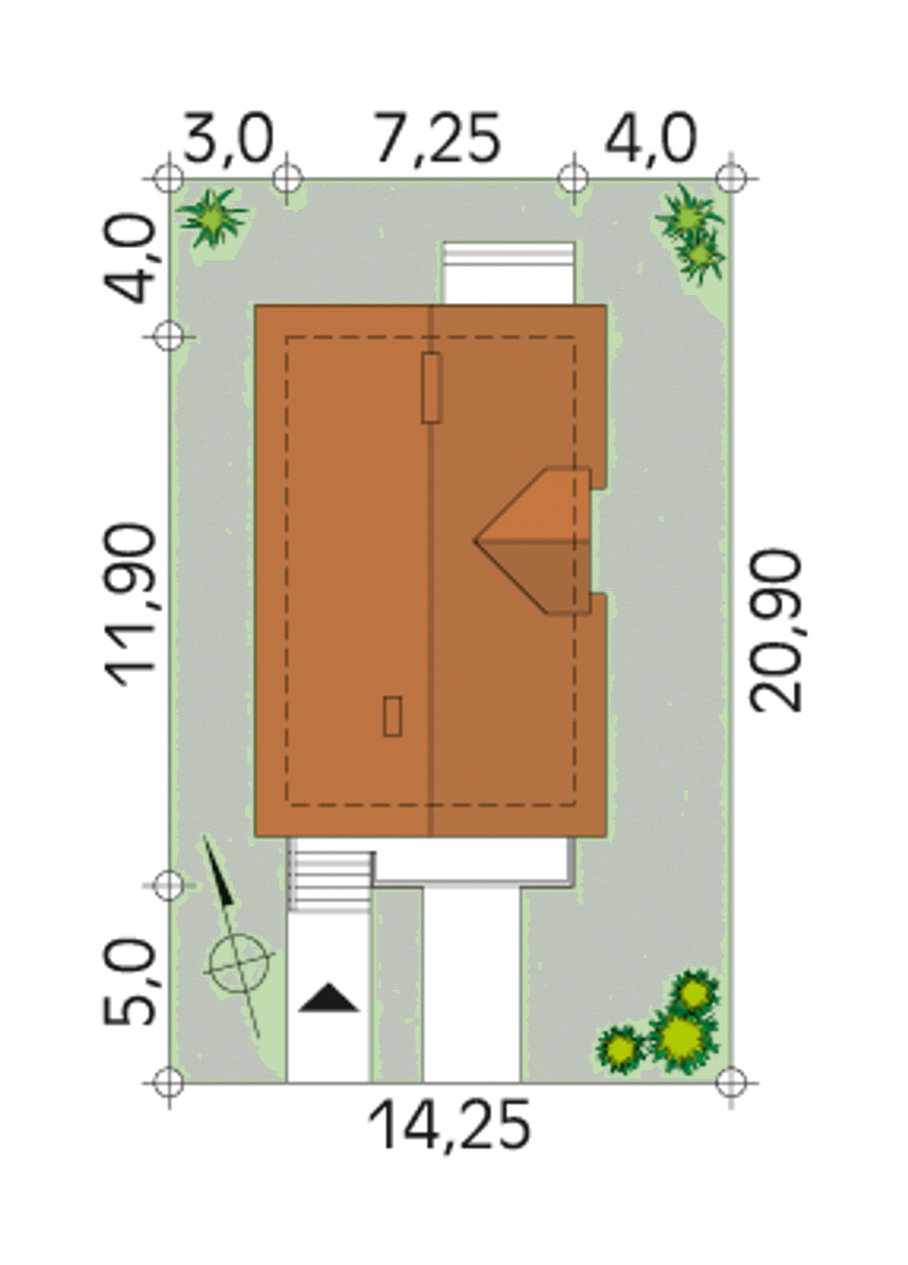 Szerokość działki 14.25 m |