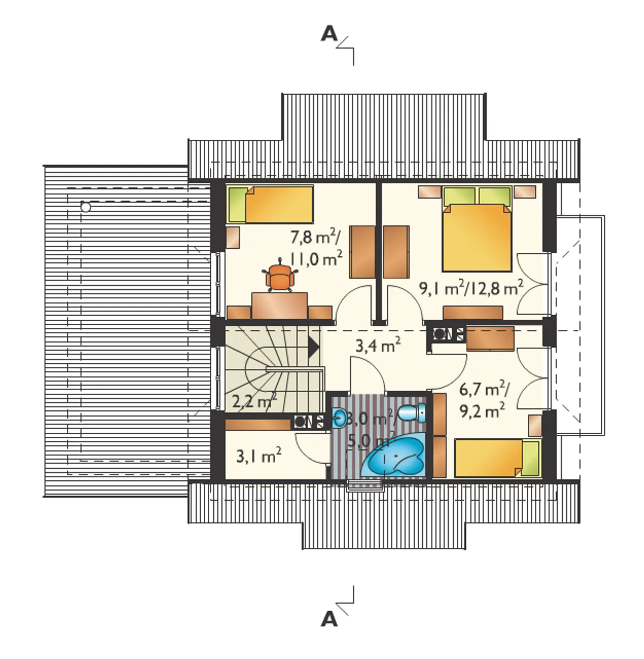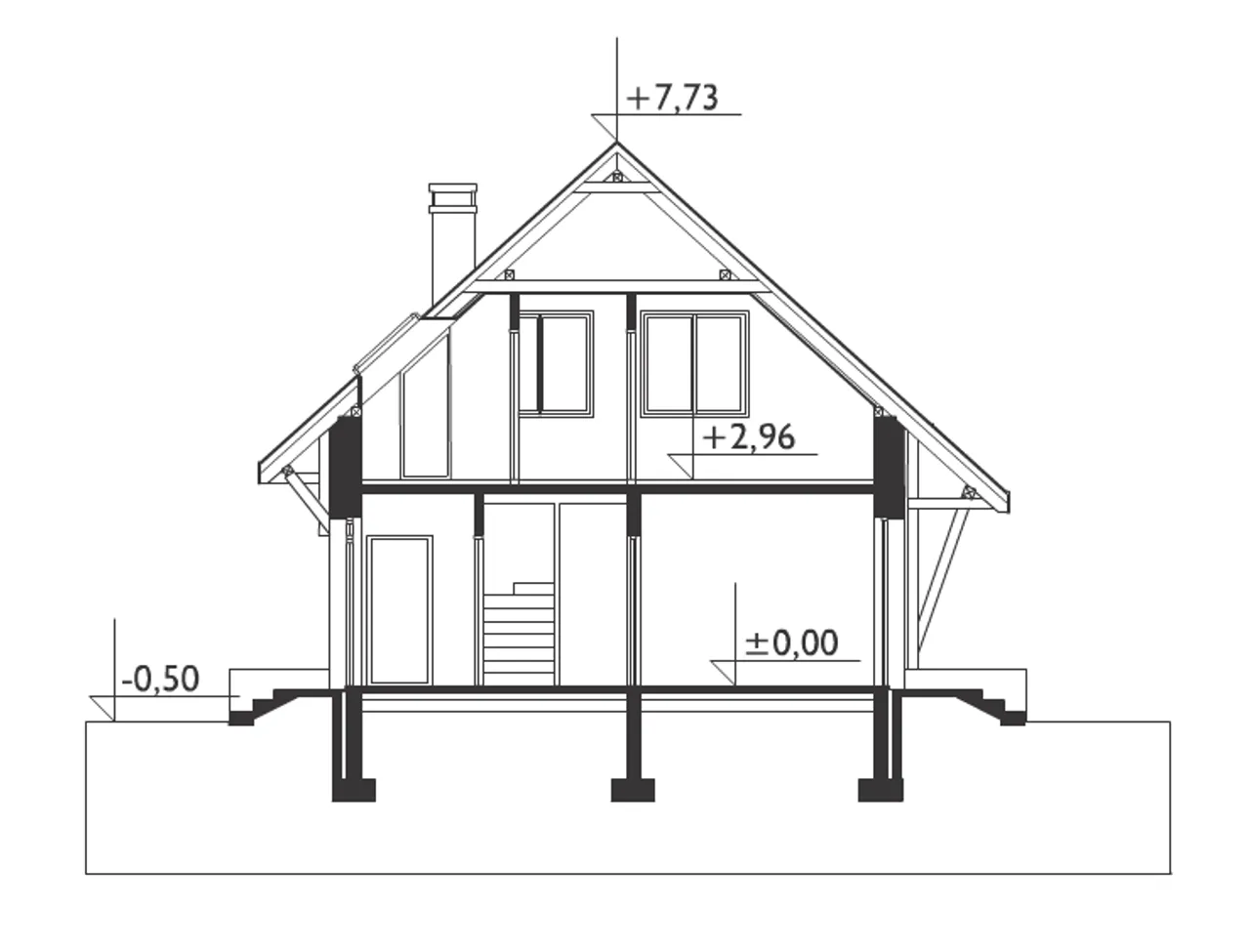 - elewacje - pokazują dokładny wygląd domu od frontu, z tyłu i z boków