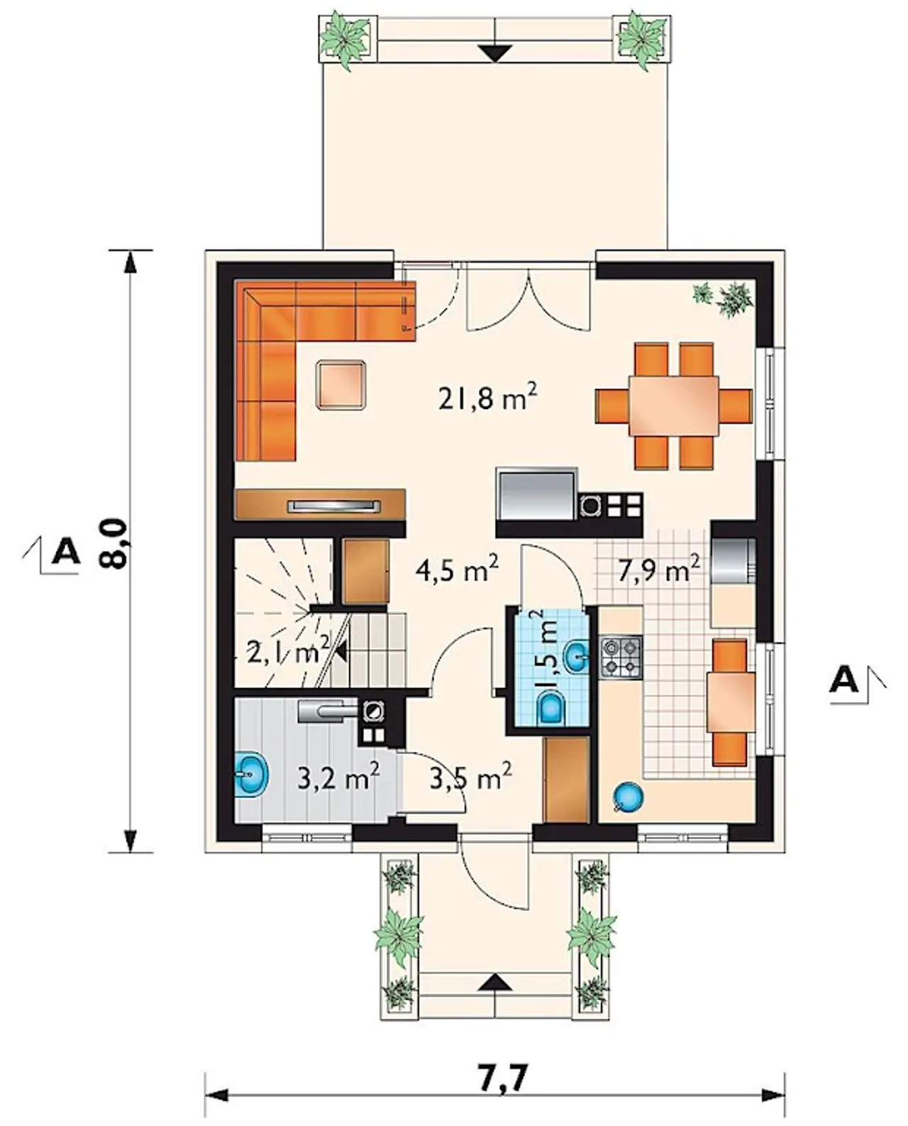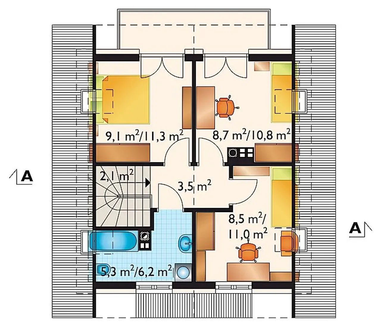- elewacje - pokazują dokładny wygląd domu od frontu, z tyłu i z boków
