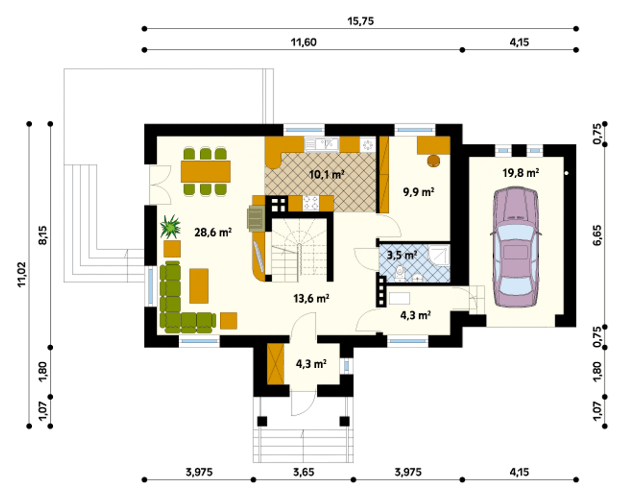 Szerokość budynku 15.75 m |
