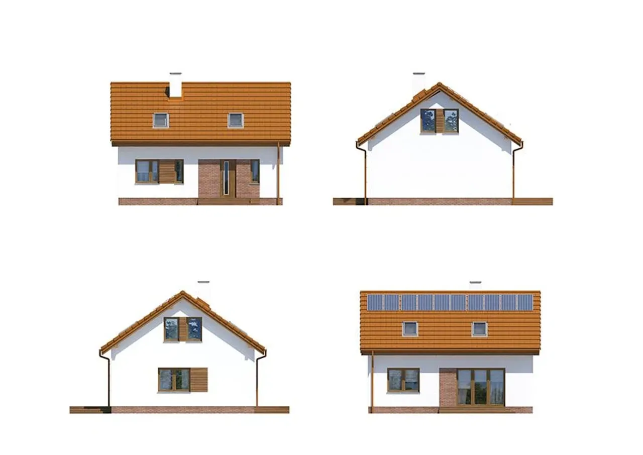 Kupując projekt w technologii murowanej powinieneś budować dom murowany. Zupełna zmiana technologii na szkieletową wymaga przeprojektowania całego budynku ( zmieniają się obciążenia, fundamenty, konstrukcja dachu). Wydamy zgodę na takie przeprojektowanie jednak wiążę się to z dużymi kosztami. Istnieją firmy wykonawcze, które podejmują się zmiany technologii budowy bezpłatnie przy skorzystaniu z ich usług wykonawczych. Zdarza się, że pracownia architektoniczna przygotowuje warianty konkretnego projektu przewidując także inne technologie. Prosimy o sprawdzenie czy istnieje poszukiwana wersja projektu, w zakładce - warianty projektu.