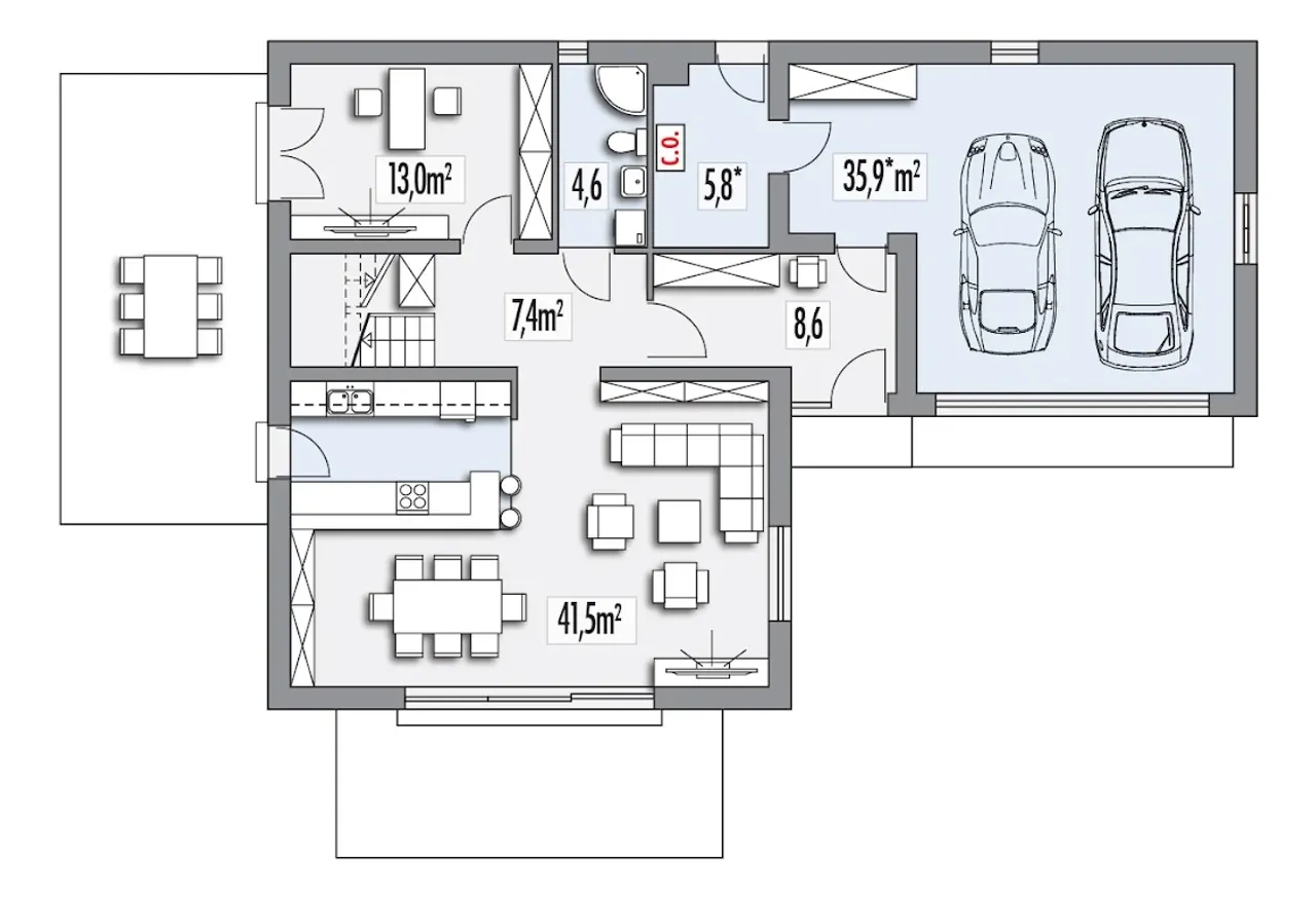 Wypełnij formularz i otrzymaj rysunki w pdf z dokładnymi wymiarami budynku i pomieszczeń (długość, szerokość, wysokość) dla projektu Sosenka 3