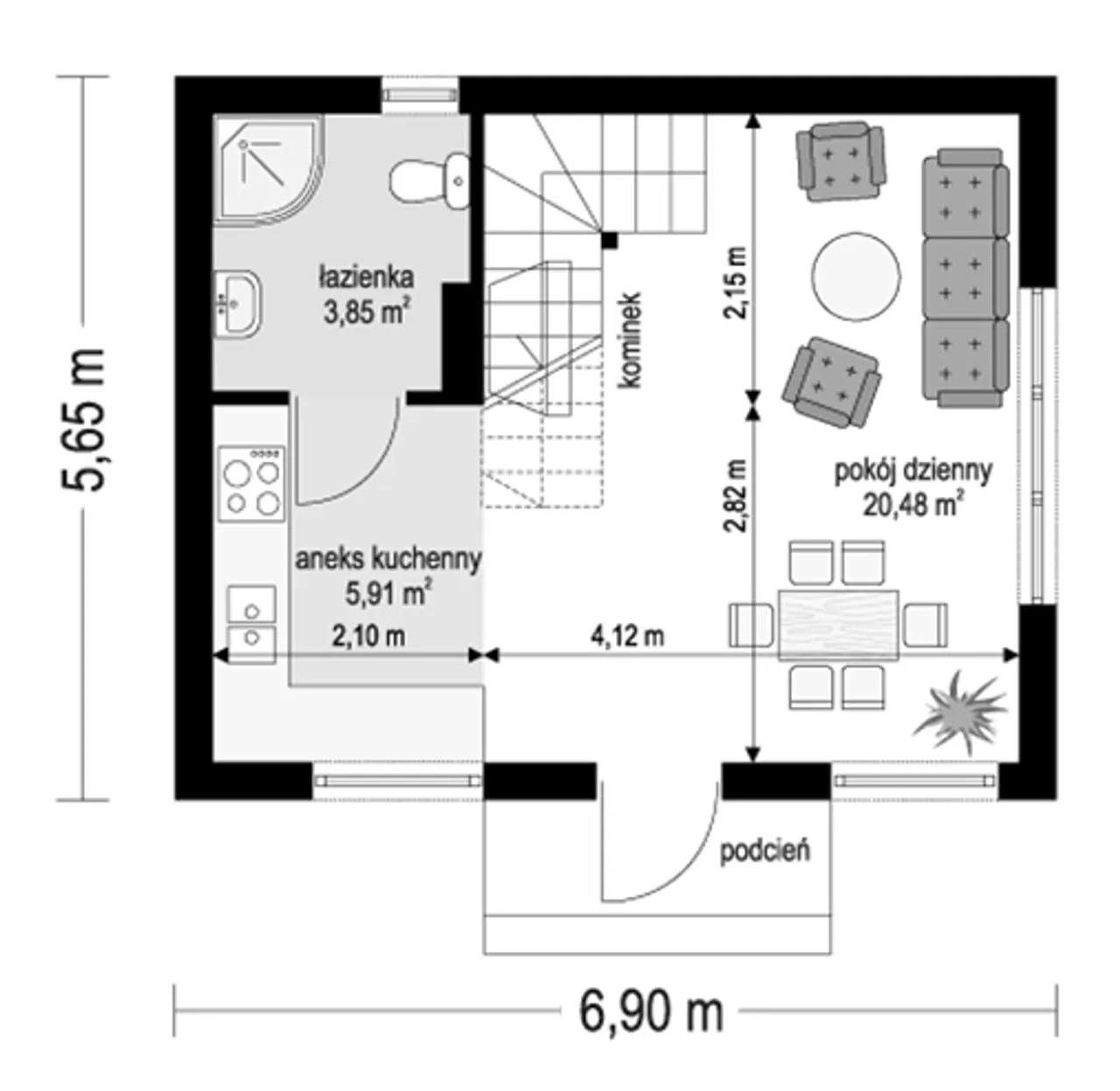 Wypełnij formularz i otrzymaj rysunki w pdf z dokładnymi wymiarami budynku i pomieszczeń (długość, szerokość, wysokość) dla projektu Sosenka wariant G