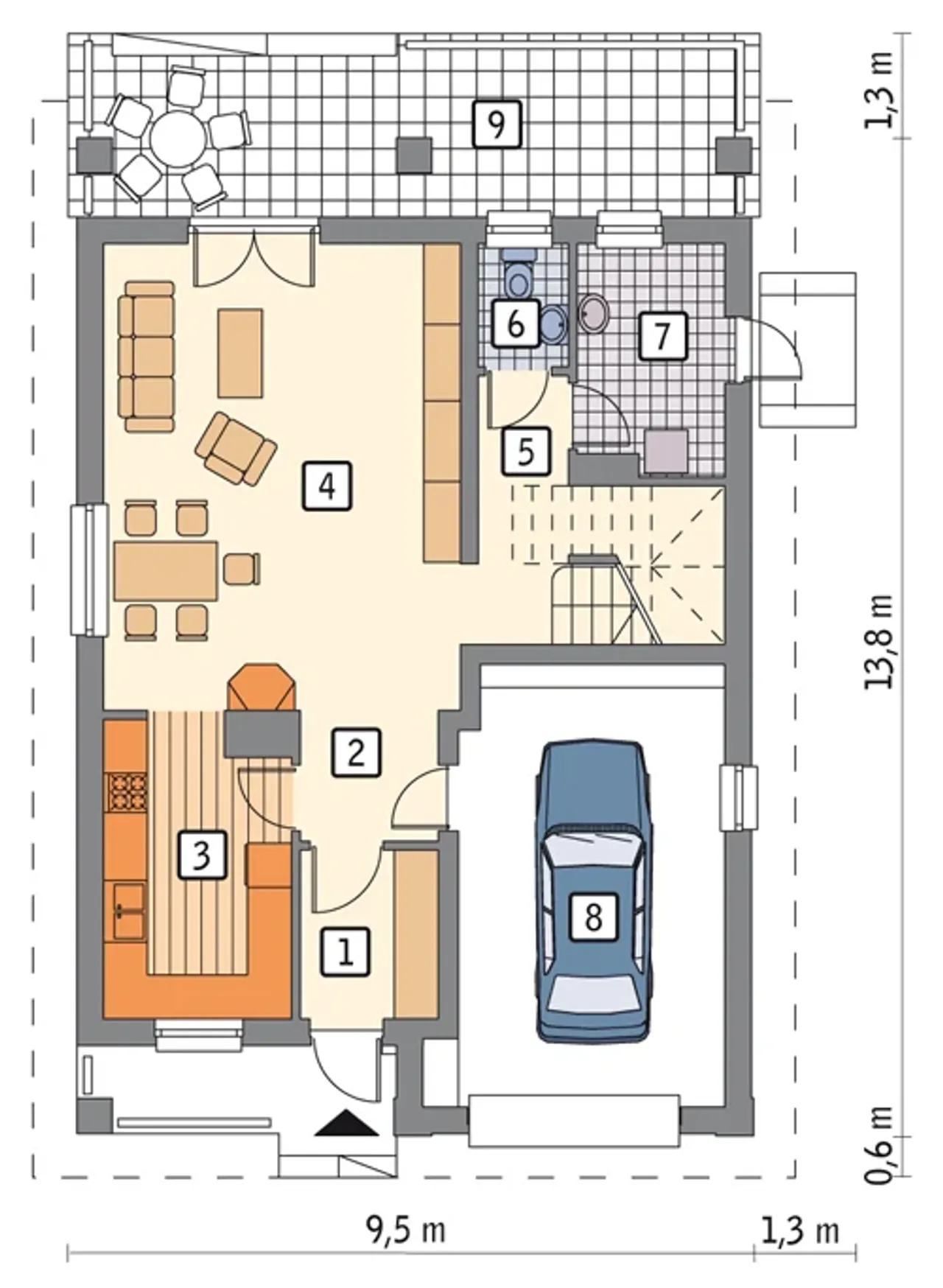 Wypełnij formularz i otrzymaj rysunki w pdf z dokładnymi wymiarami budynku i pomieszczeń (długość, szerokość, wysokość) dla projektu Sosnowe wzgórze - wariant I - M63a