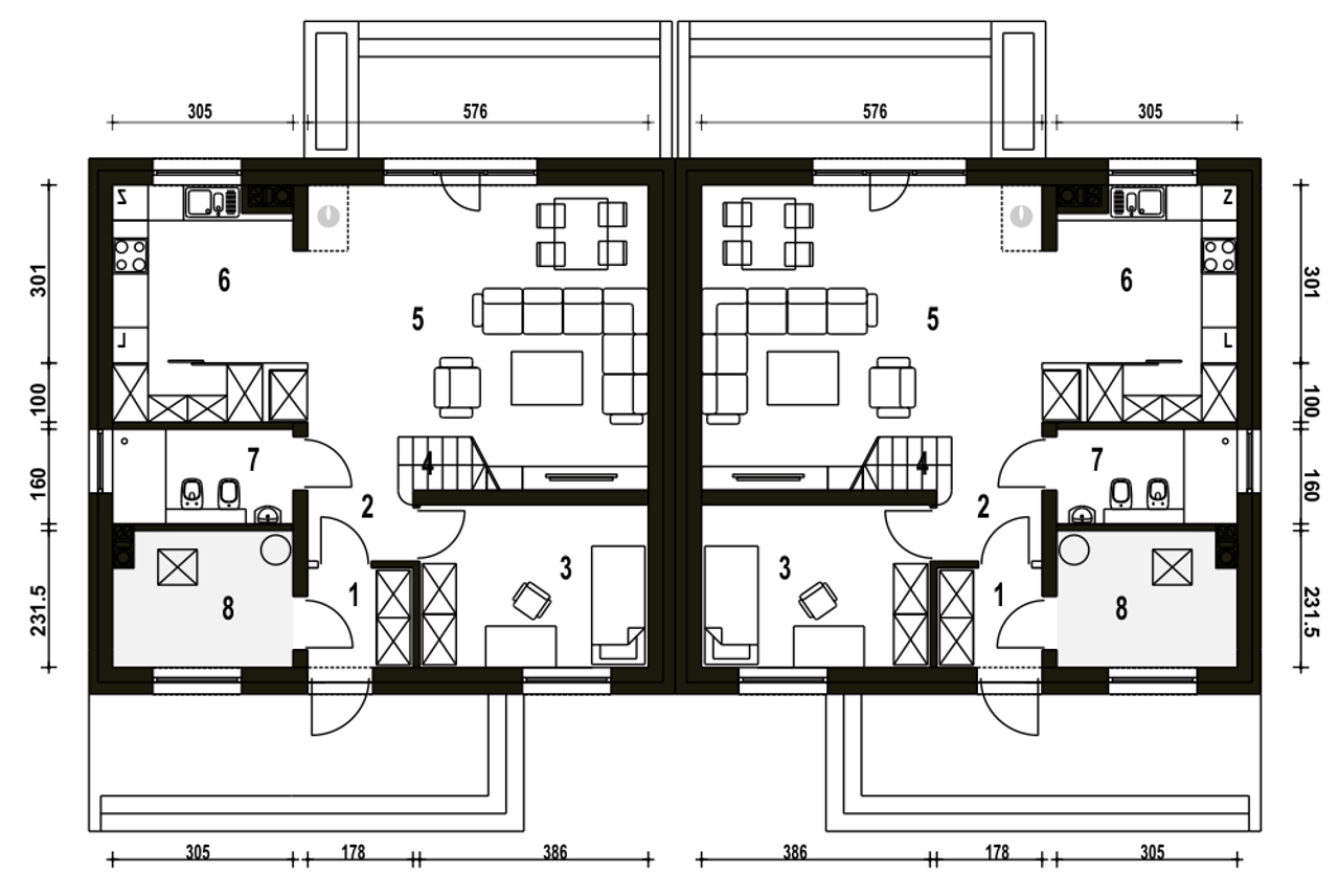 Sosnówka z garażem 1-st. bliźniak A-BL1