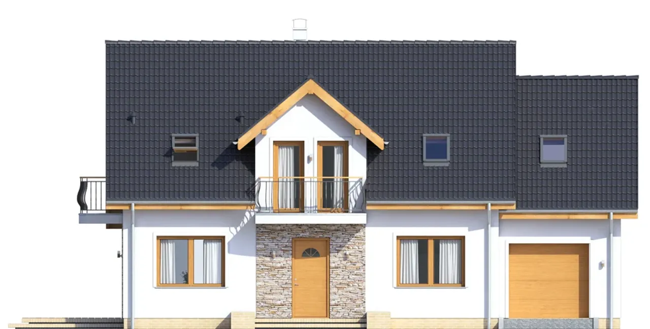 Wypełnij formularz i otrzymaj rysunki w pdf z dokładnymi wymiarami budynku i pomieszczeń (długość, szerokość, wysokość) dla projektu Sowa 10 z garażem