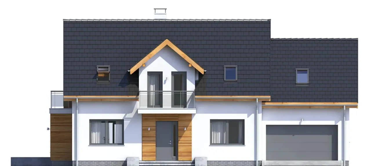 Wypełnij formularz i otrzymaj rysunki w pdf z dokładnymi wymiarami budynku i pomieszczeń (długość, szerokość, wysokość) dla projektu Sowa 5 z garażem 2-st.