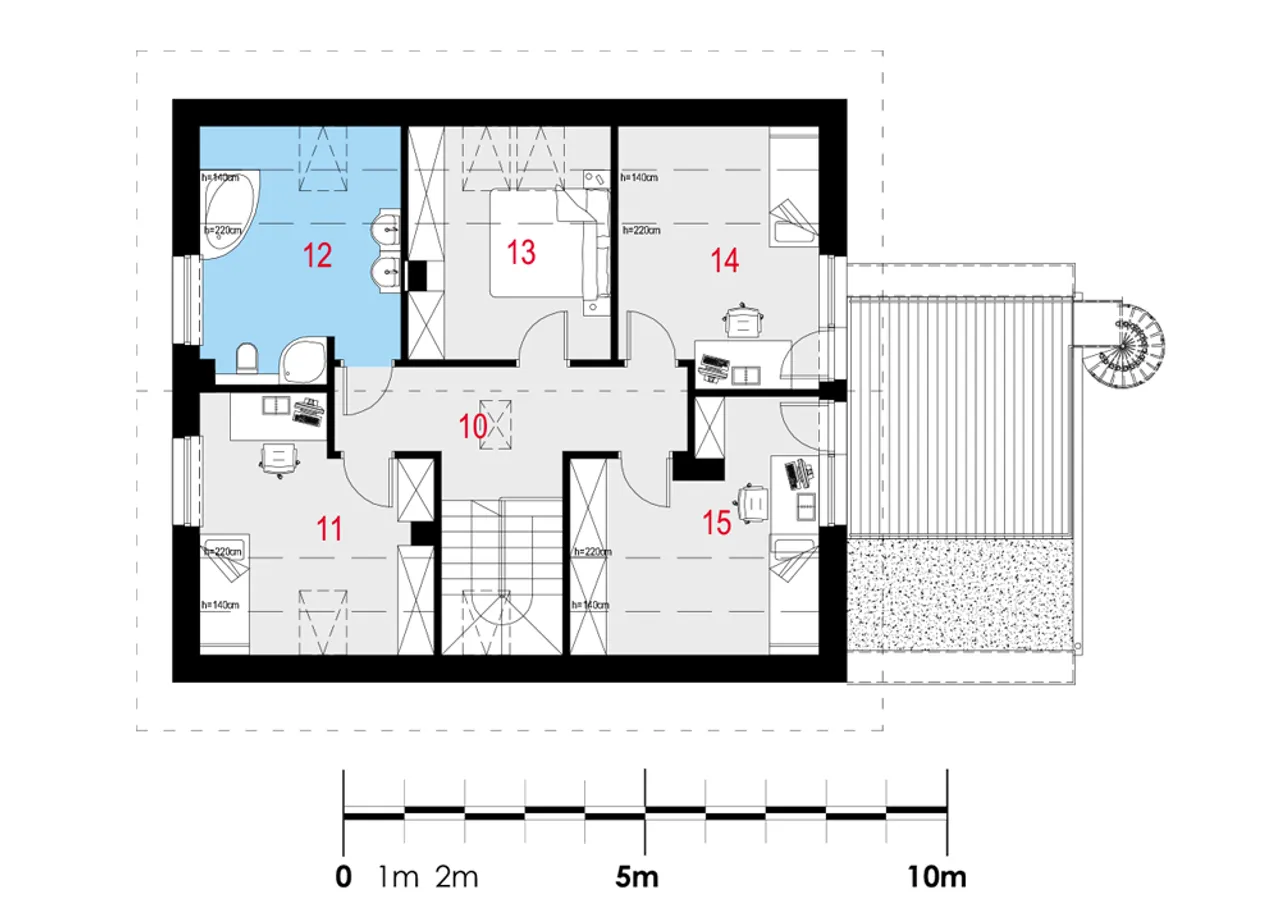 Projekt Spiralis I G1 pozwala elastycznie zaaranżować wnętrze zgodnie z Twoimi potrzebami. Nawet większa rodzina zyska tu optymalny układ pomieszczeń, dużą strefę dzienną z kominkiem, praktyczny garaż oraz przestrzeń do przechowywania. Dzięki zastosowaniu mocnych stropów i wysokiej ściany kolankowej poddasze jest w pełni funkcjonalne i wygodne do aranżacji pokoi czy domowego biura.