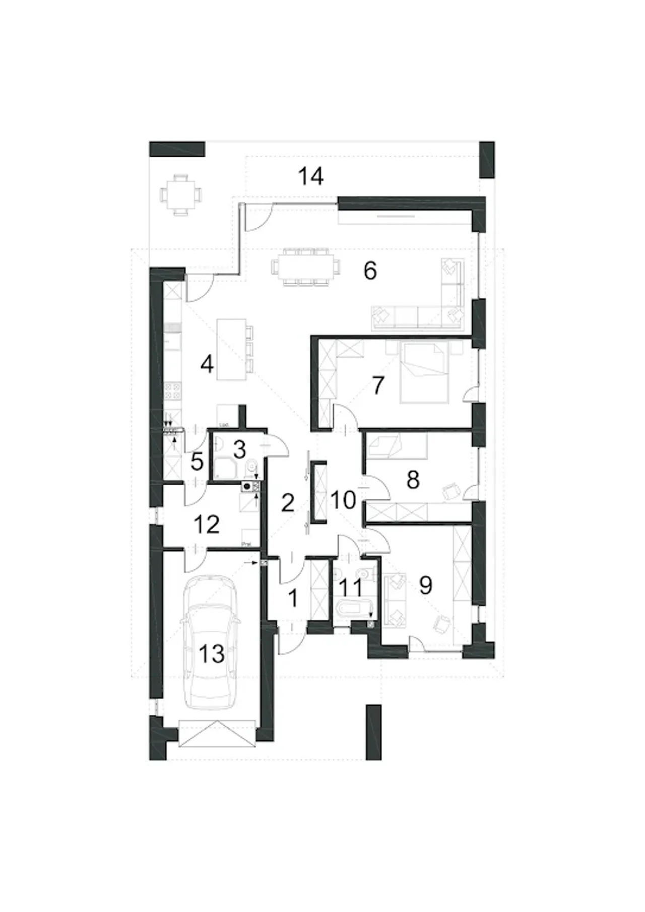 Wypełnij formularz i otrzymaj rysunki w pdf z dokładnymi wymiarami budynku i pomieszczeń (długość, szerokość, wysokość) dla projektu Spokojny D51