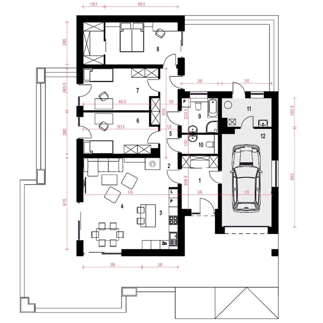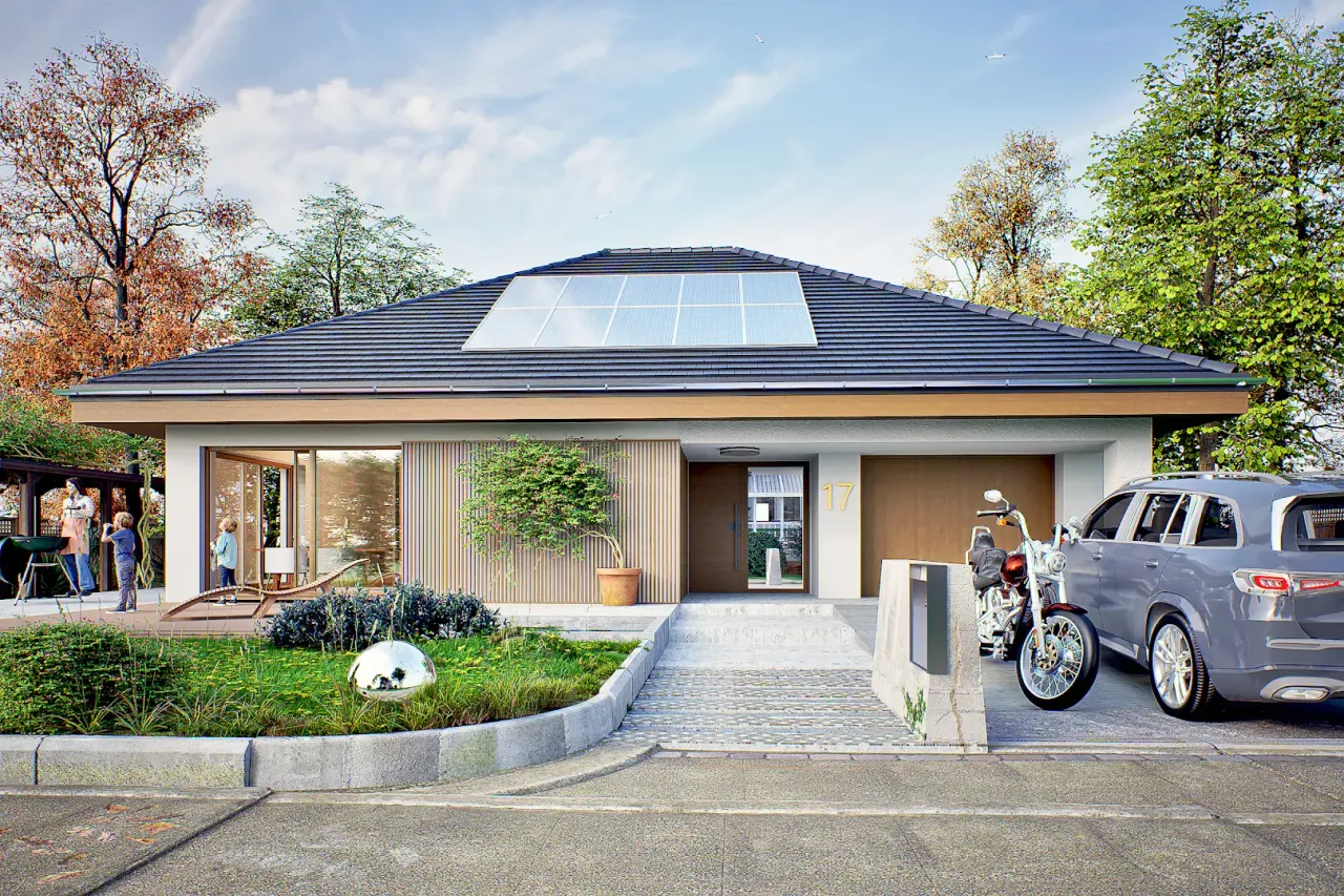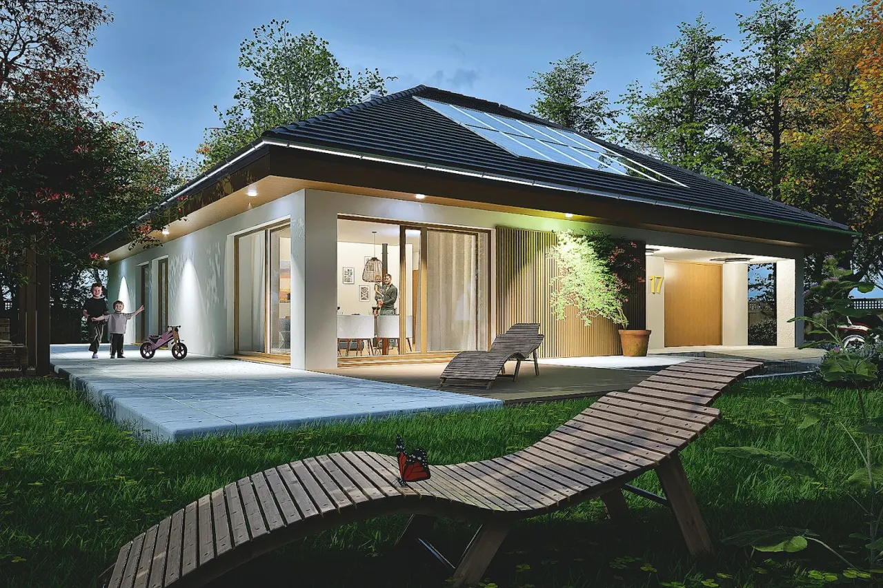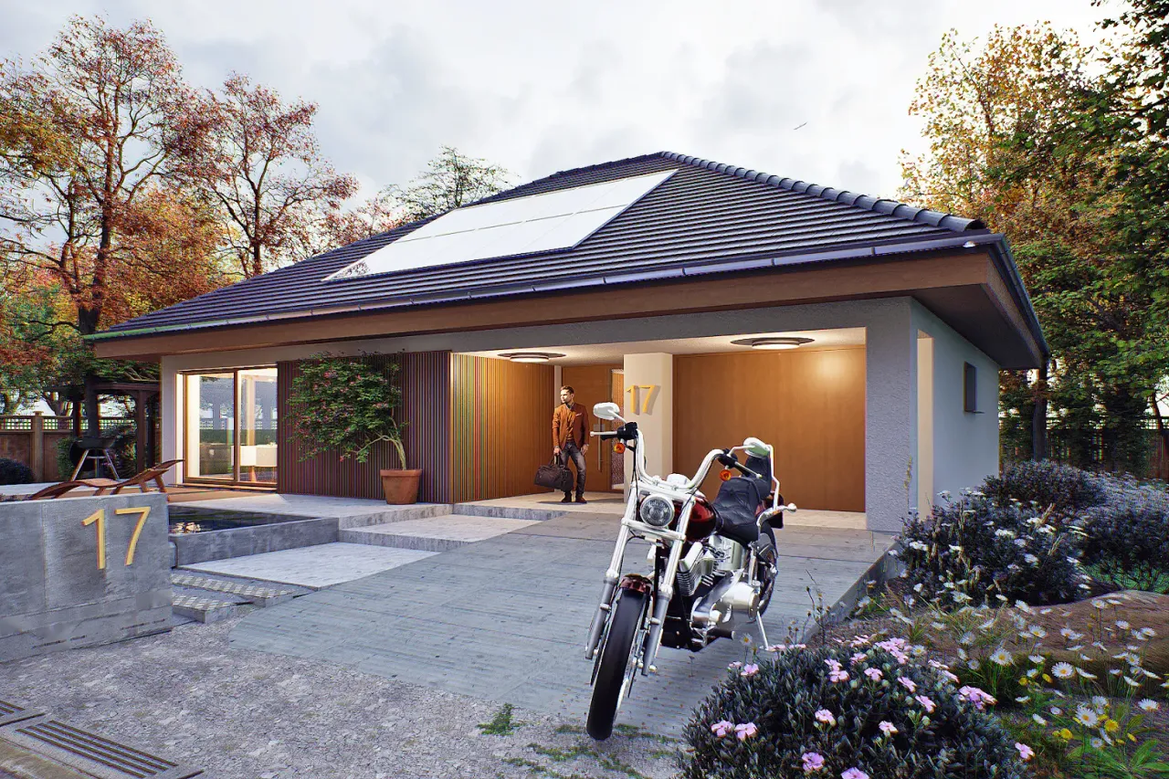 Srebrna II z garażem 1-st. A to projekt, który przyciąga uwagę swoją elegancją i funkcjonalnością. Rodzinny dom o przemyślanej przestrzeni, zapewniającej wygodne warunki do życia. Duża strefa dzienna na parterze oferuje idealne miejsce do spędzania czasu razem, a kameralnie ulokowane sypialnie gwarantują prywatność i spokój. Dołączony garaż to praktyczne rozwiązanie, które ułatwia codzienne funkcjonowanie, a starannie zaprojektowana bryła budynku świetnie wpisuje się w każdy krajobraz.