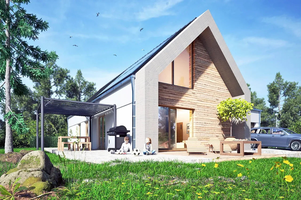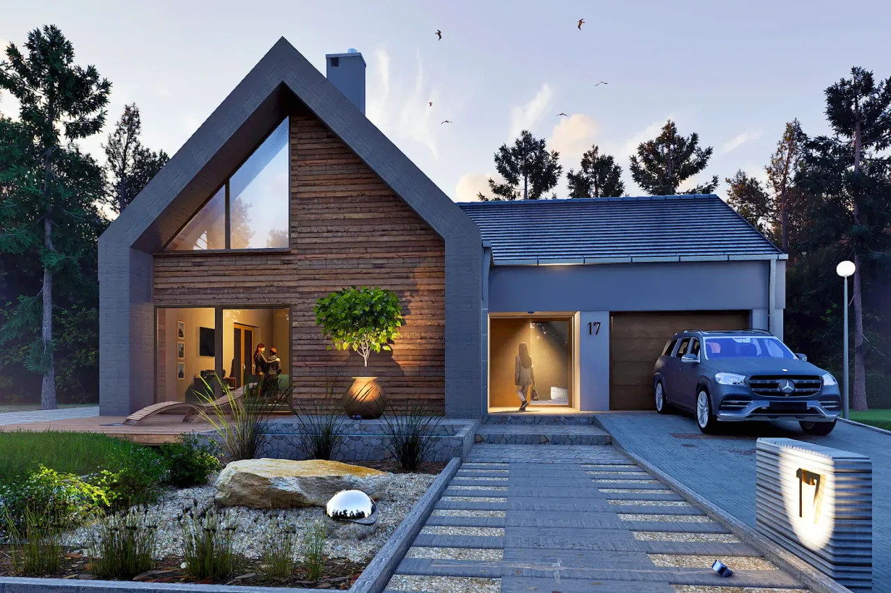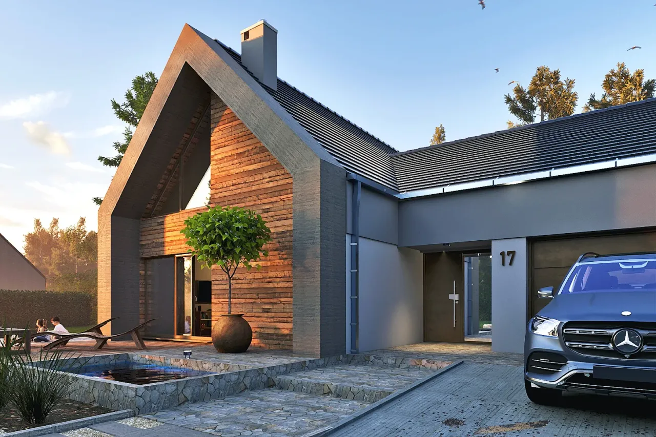 Projekt Srebrna z garażem 1-st. A przyciąga uwagę swoją nowoczesną elegancją i praktycznym podejściem do przestrzeni życiowej. Dobrze przemyślane wnętrza z pewnością zaspokoją potrzeby rodziny, oferując przestronne pokoje i inteligentnie zaplanowane pomieszczenia wspólne. Estetyka zewnętrzna łączy w sobie prostotę z nowoczesnymi akcentami, co sprawia, że dom wpisuje się zarówno w otoczenie miejskie, jak i podmiejskie. Ponadto obecność garażu stanowi udogodnienie, które docenią kierowcy, poszukujący praktycznych rozwiązań. To interesująca propozycja dla tych, którzy cenią sobie nowoczesność i funkcjonalność w jednym projekcie.