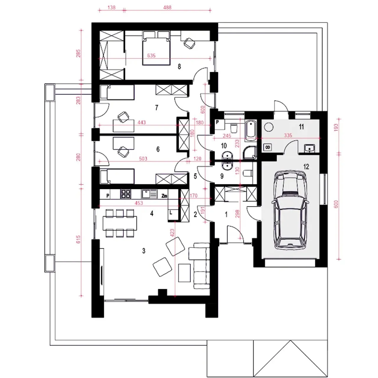 Wypełnij formularz i otrzymaj rysunki w pdf z dokładnymi wymiarami budynku i pomieszczeń (długość, szerokość, wysokość) dla projektu Srebrna z garażem 1-st. A