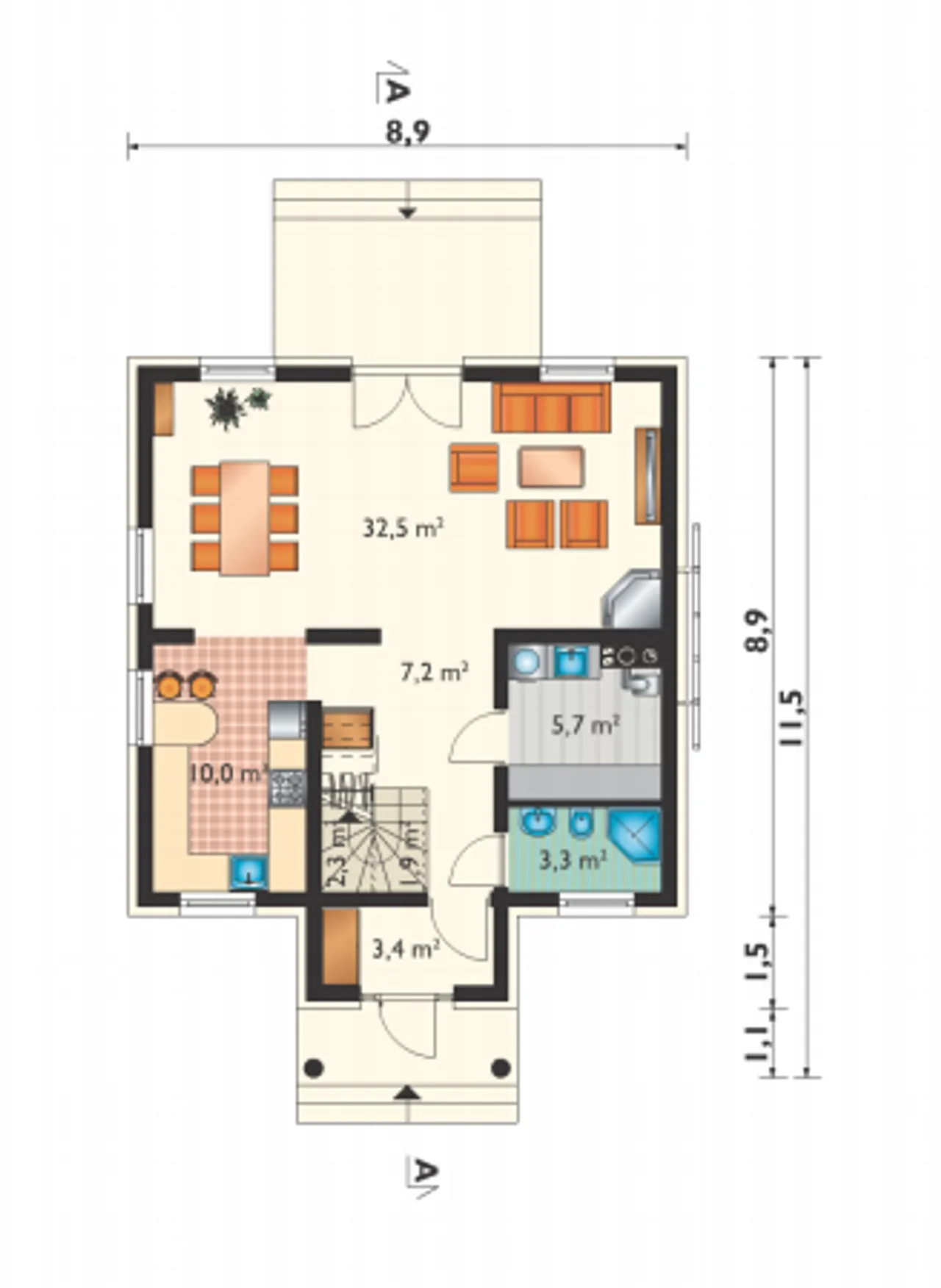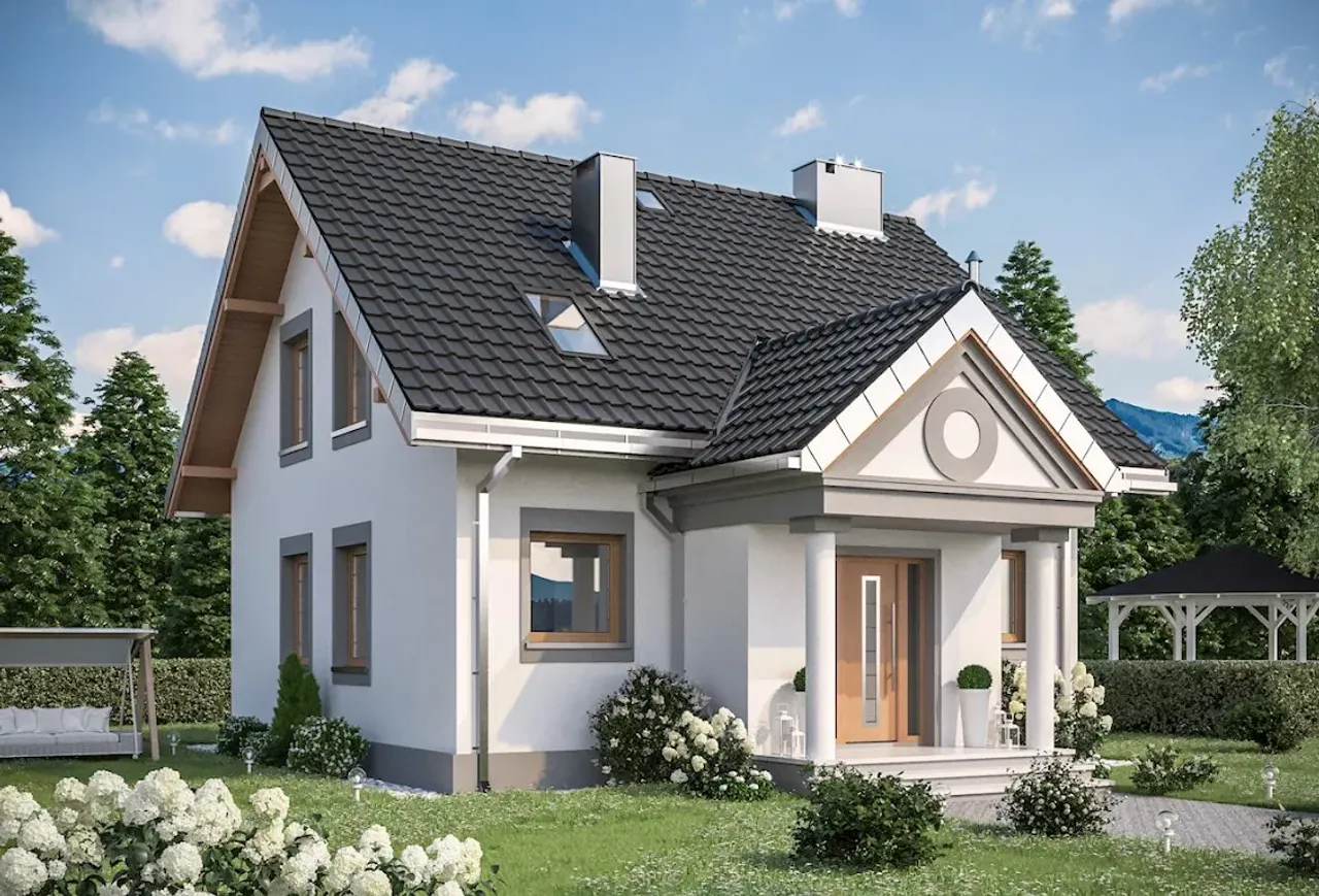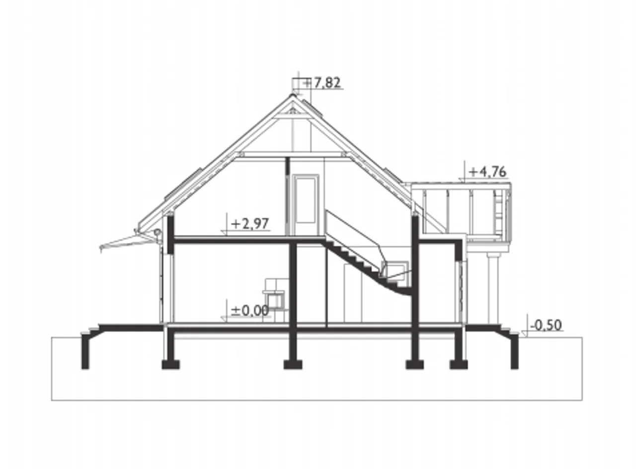- elewacje - pokazują dokładny wygląd domu od frontu, z tyłu i z boków