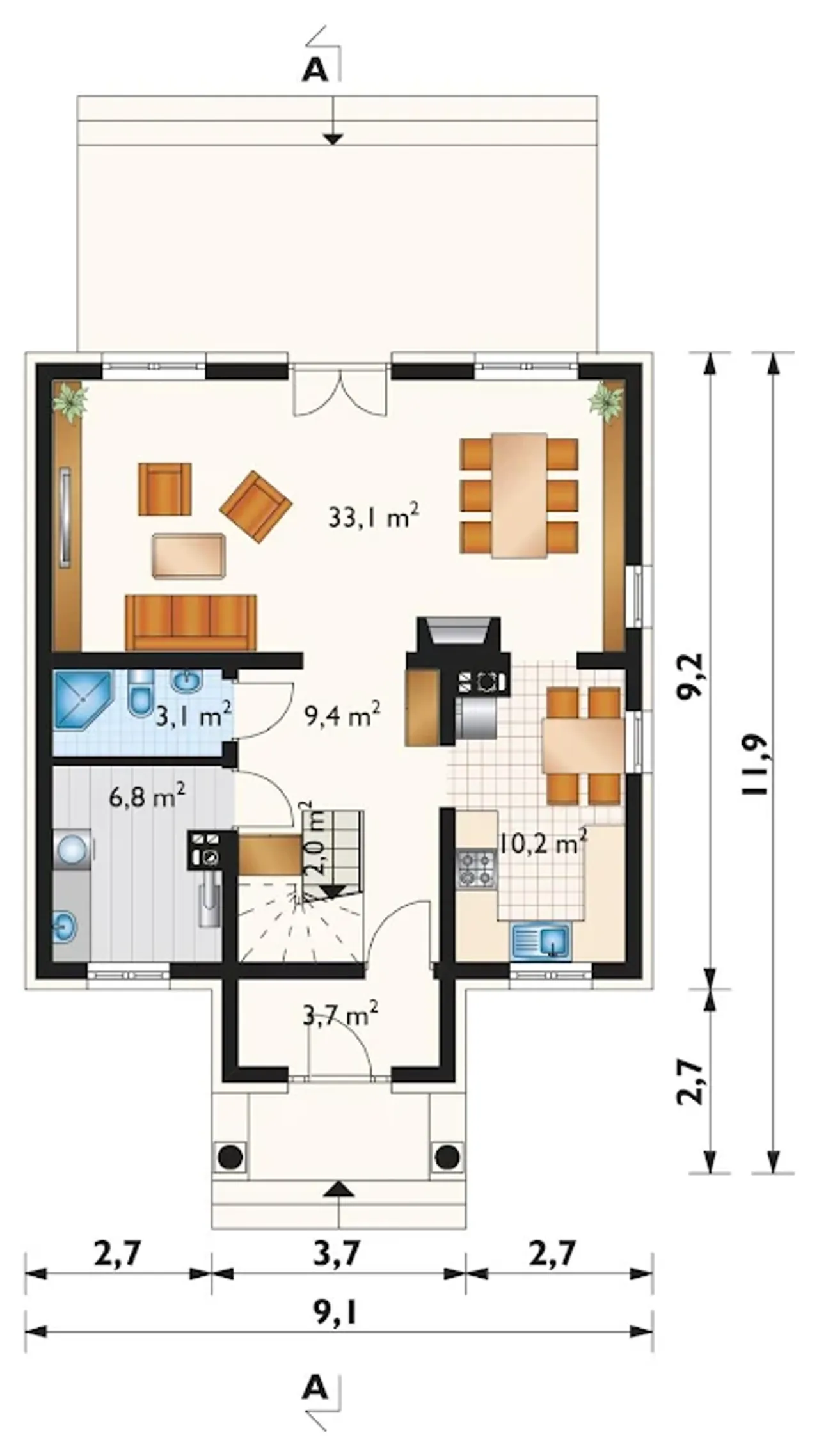 | Szerokość budynku 9.2 m |