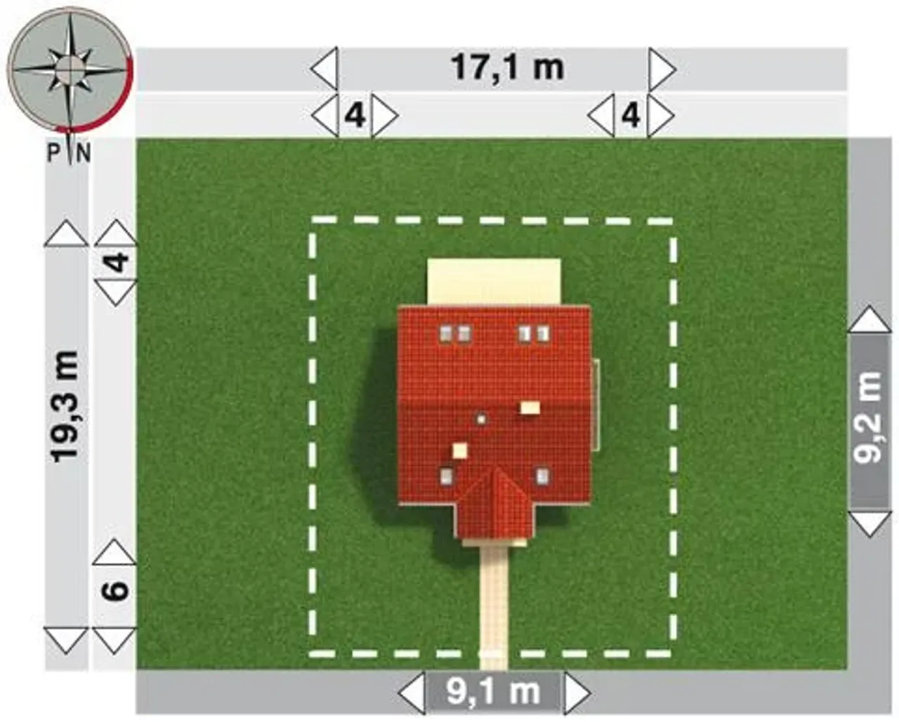 | Szerokość działki 17.1 m |