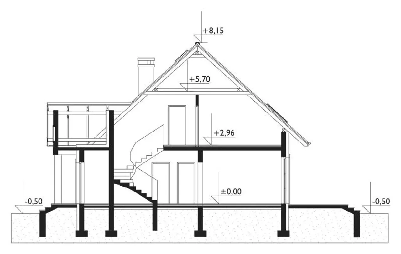 - przekroje - pokazują wszystkie elementy budynku po przecięciu go wzdłuż lub w poprzek od dachu do fundamentów tj. warstwy podłogi, stropów i dachu