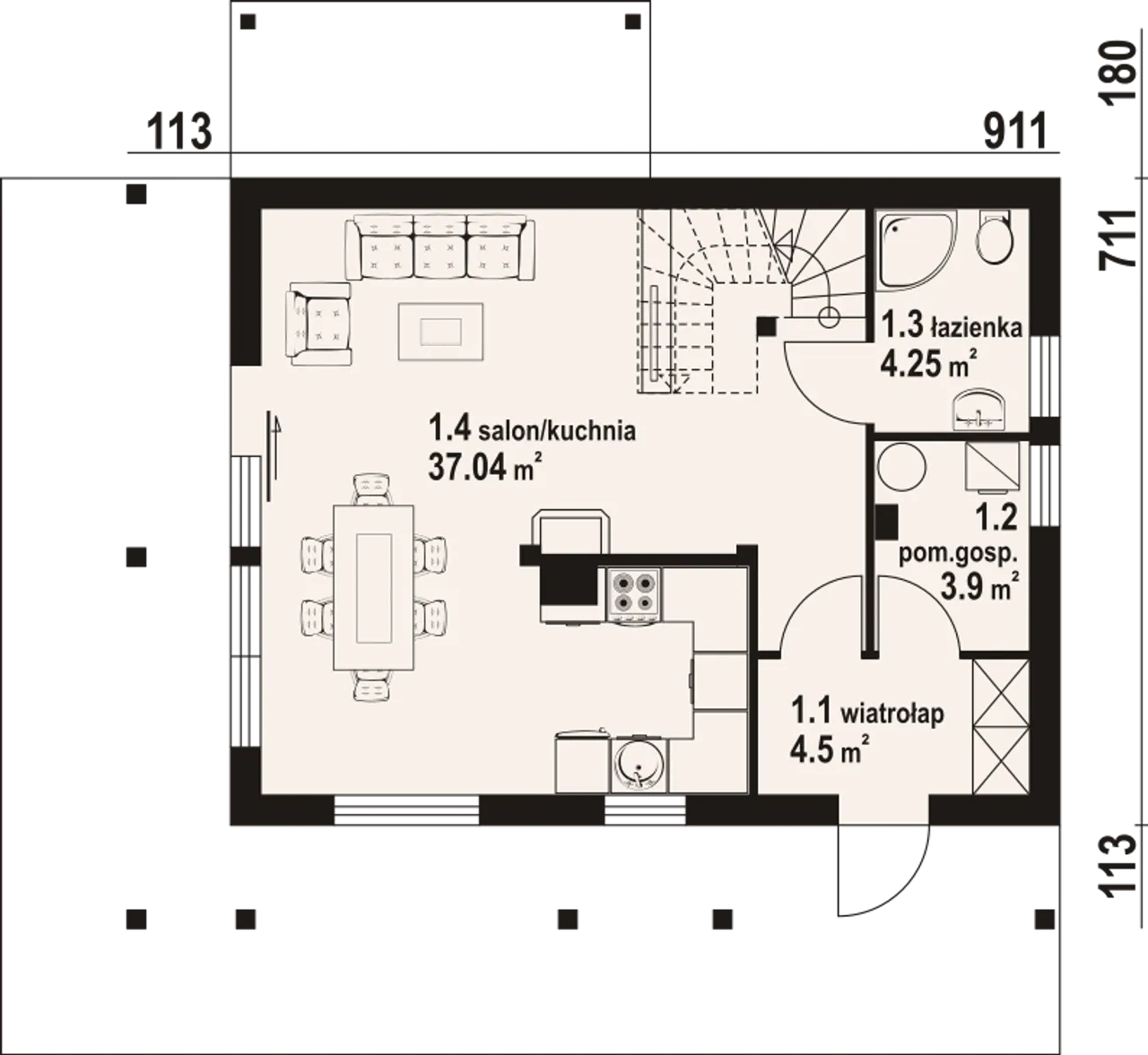 Szerokość budynku 9.11 m |
